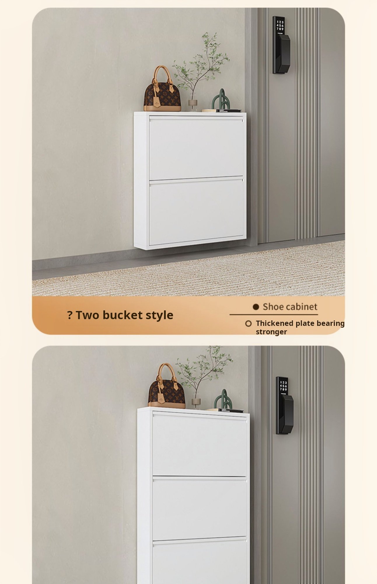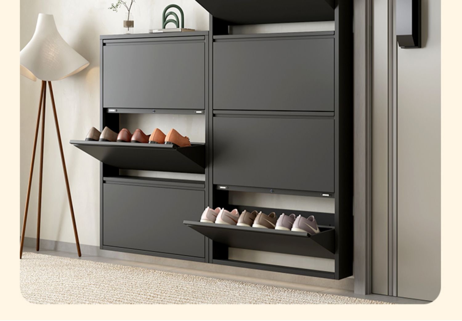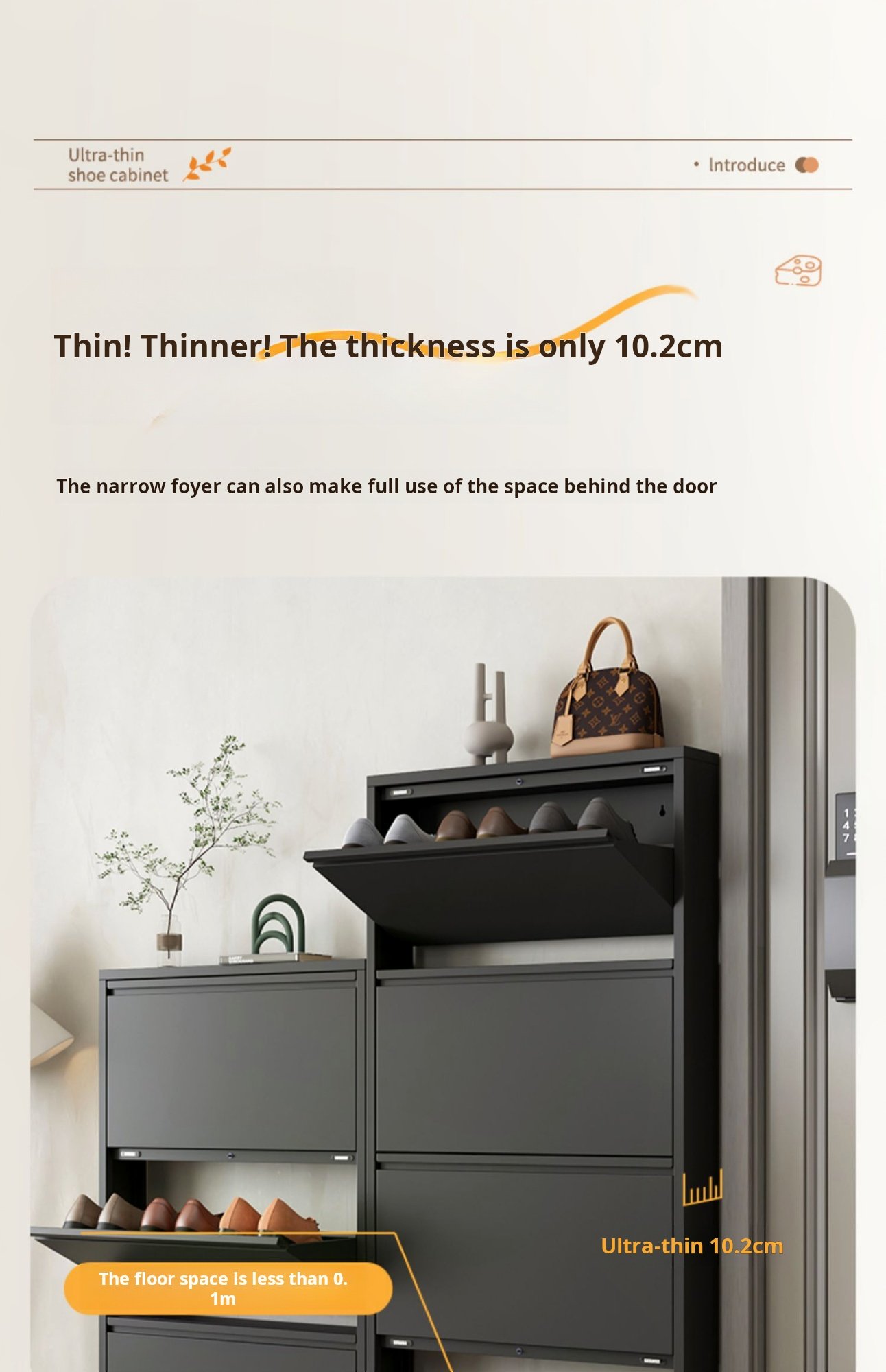 “12cm Ultra-Thin Steel Flip Shoe Cabinet – Wall-Mounted, Floating, Minimalist Entryway Storage for Small Spaces”