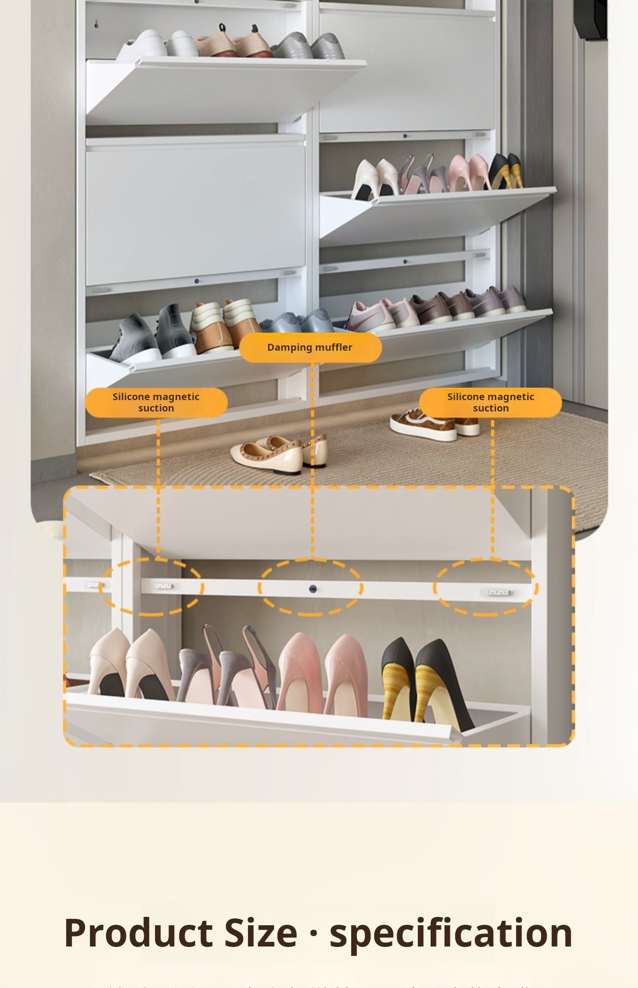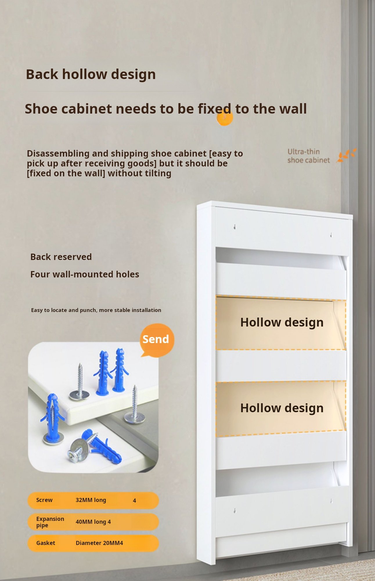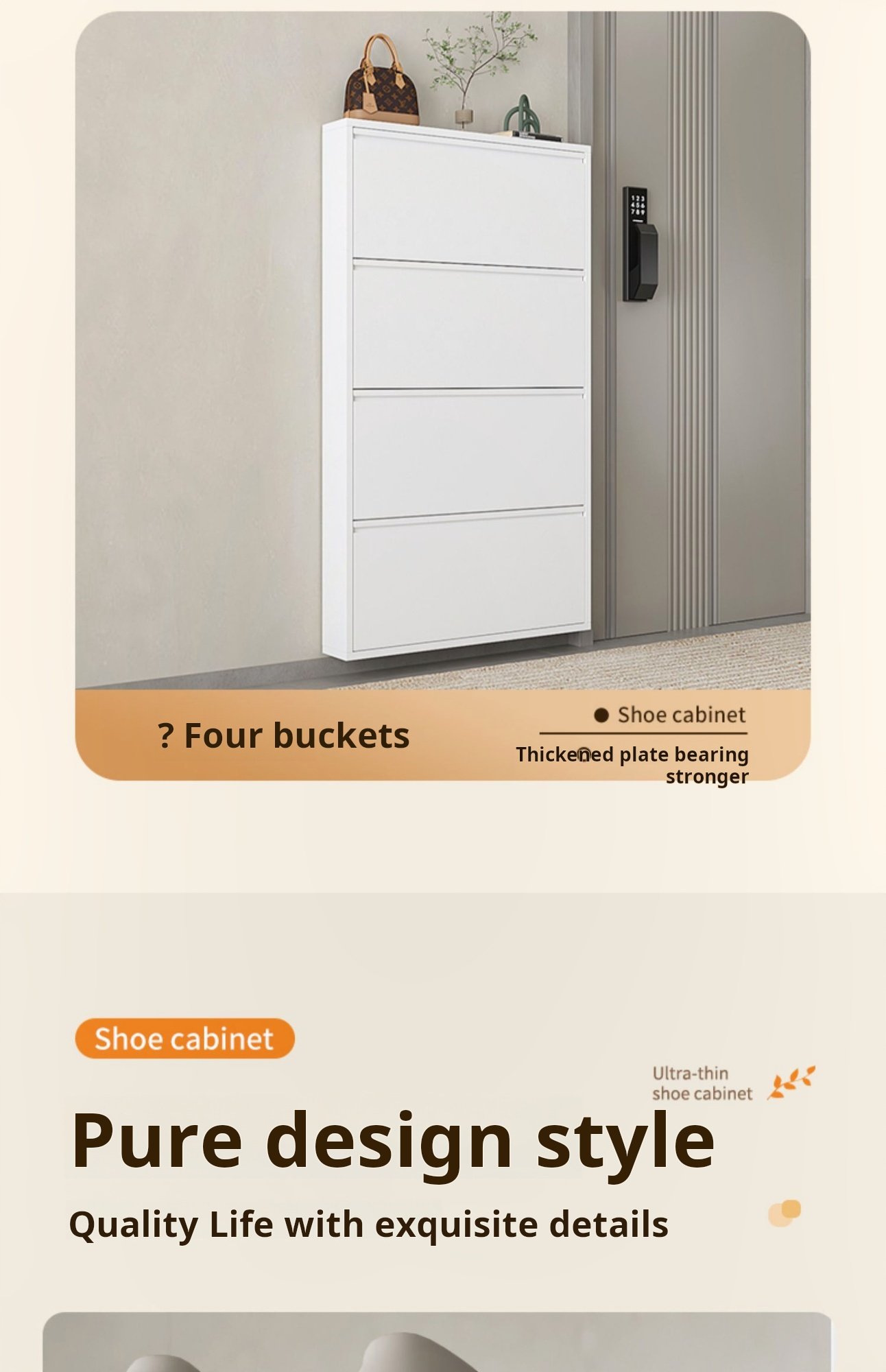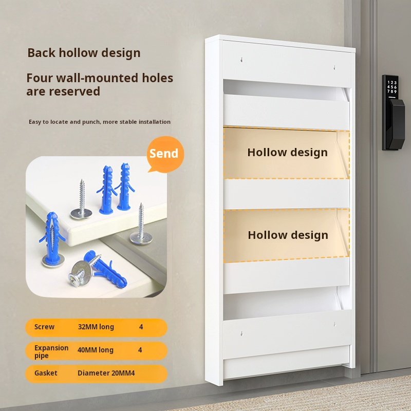 “12cm Ultra-Thin Steel Flip Shoe Cabinet – Wall-Mounted, Floating, Minimalist Entryway Storage for Small Spaces”