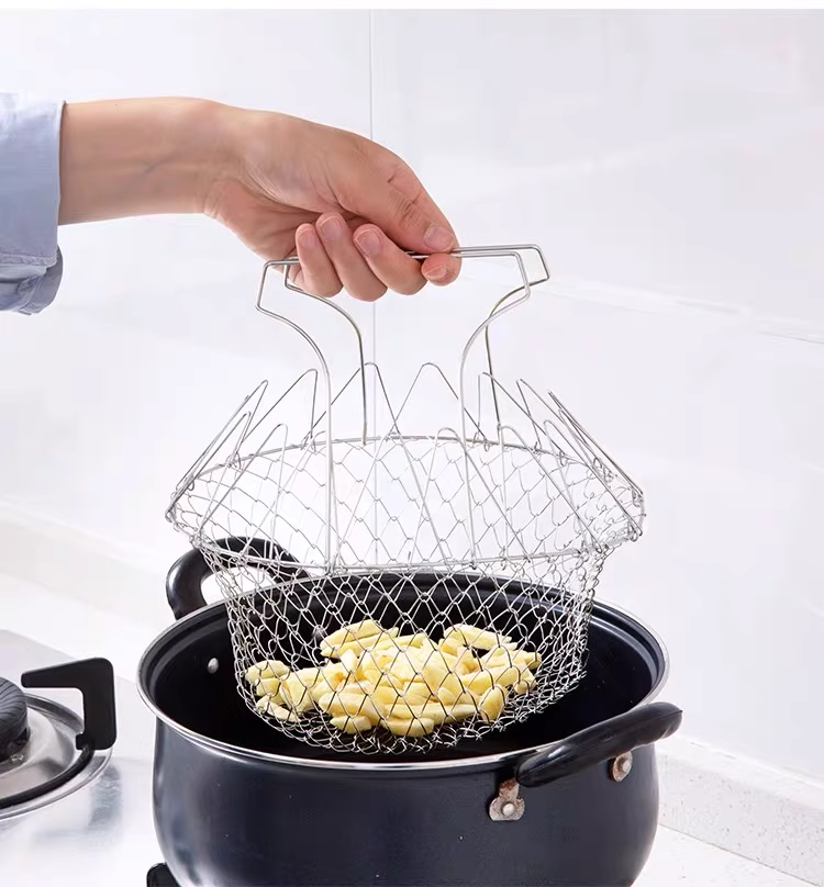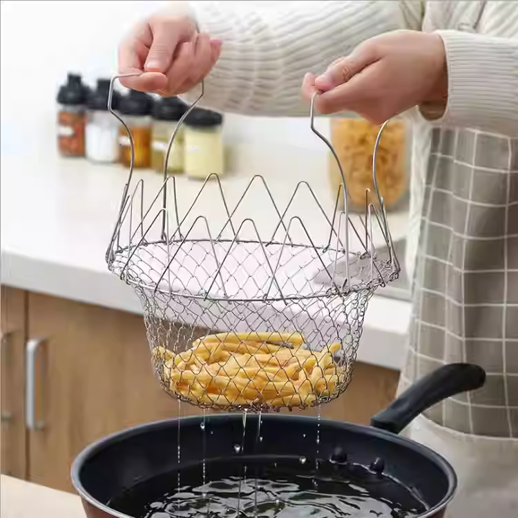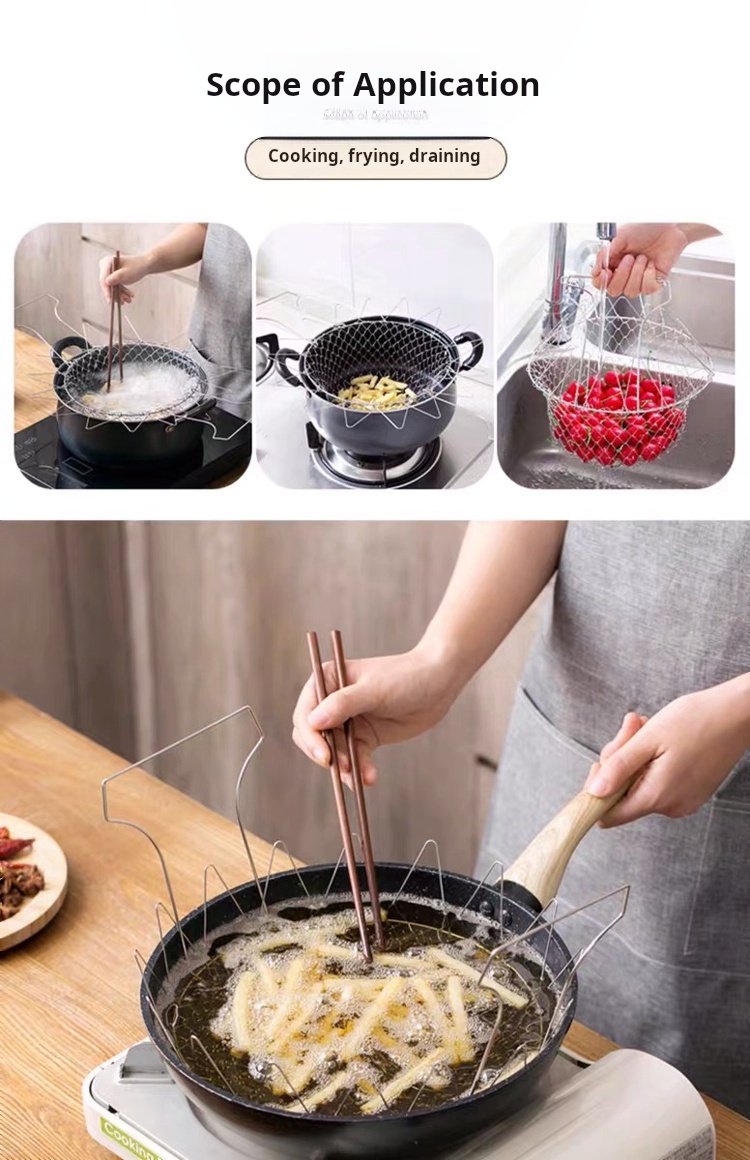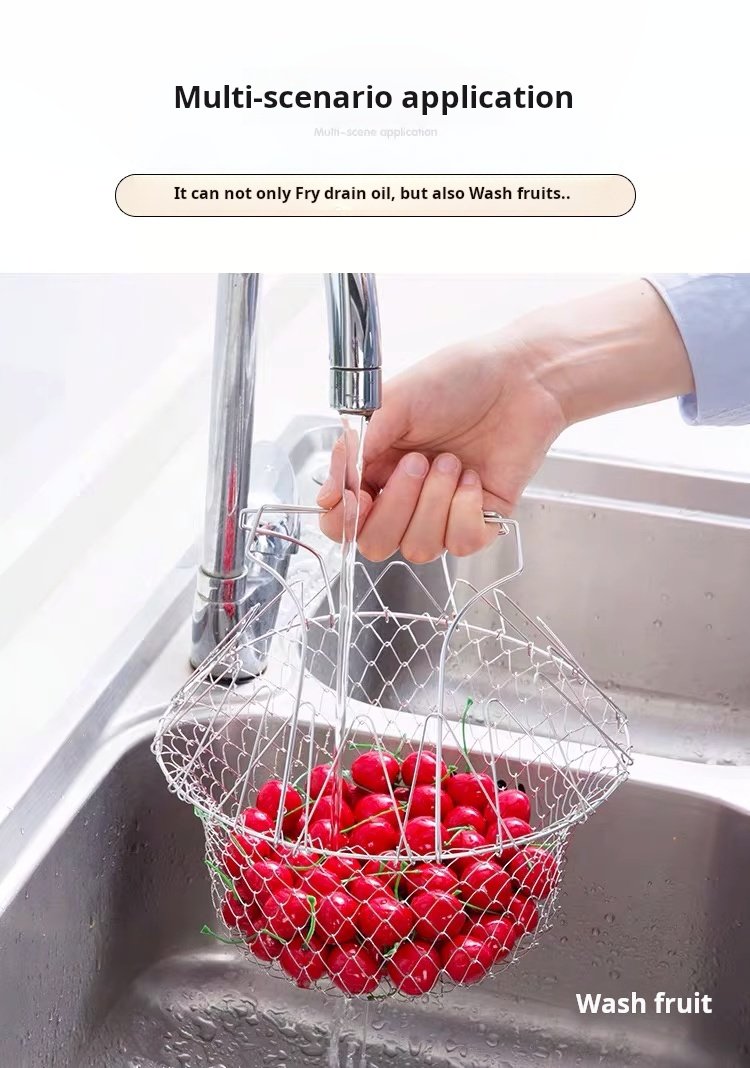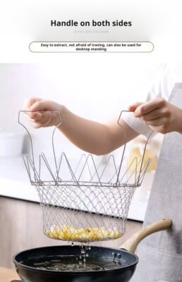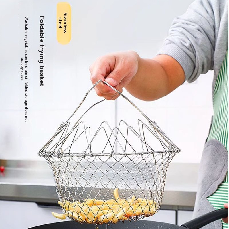 304 Stainless Steel Folding Deep-Fry Basket for French Fries and Snacks, Adjustable Oil-Draining Basket, Vegetable Washing and Draining Basket, Cooking Basket (Pack of 2)
