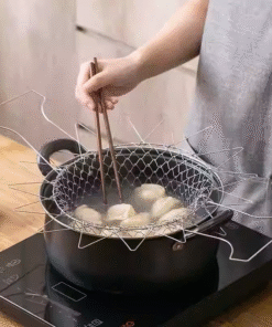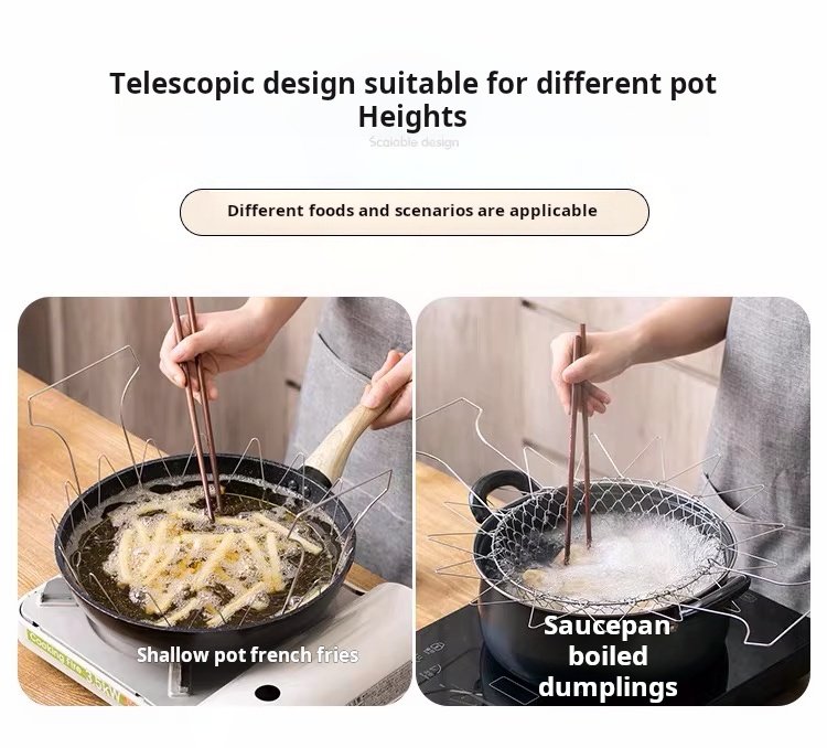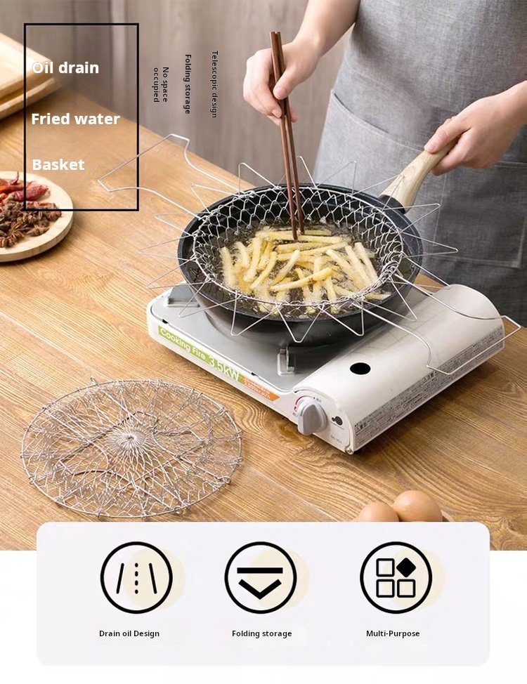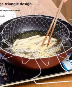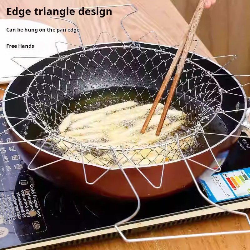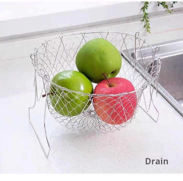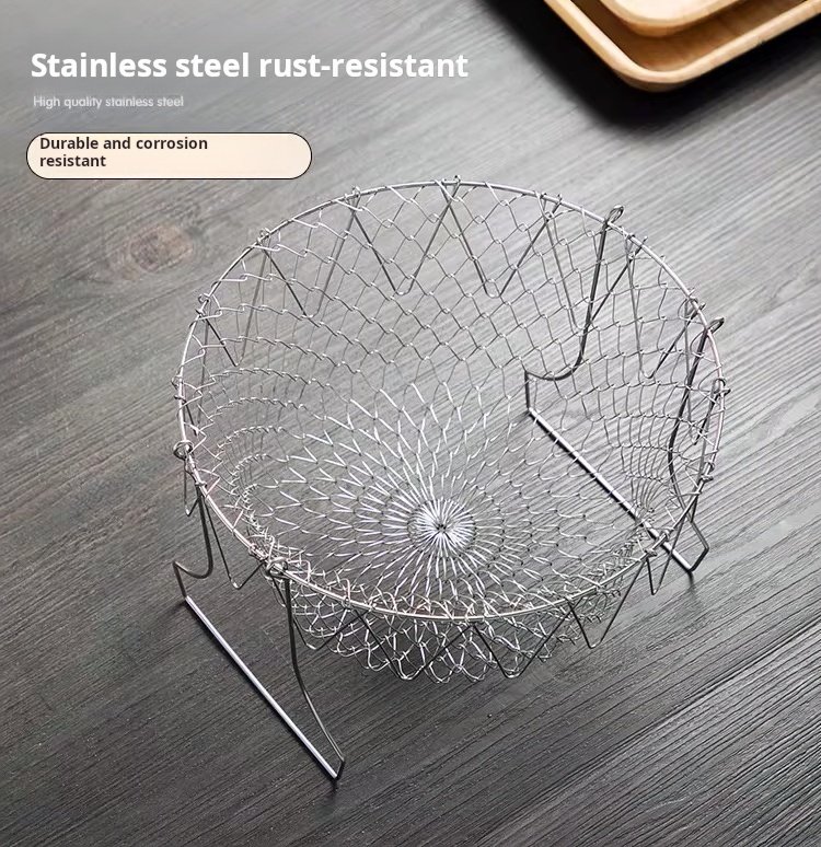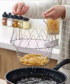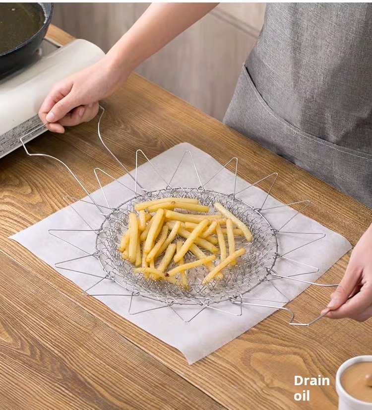 304 Stainless Steel Folding Deep-Fry Basket for French Fries and Snacks, Adjustable Oil-Draining Basket, Vegetable Washing and Draining Basket, Cooking Basket (Pack of 2)
