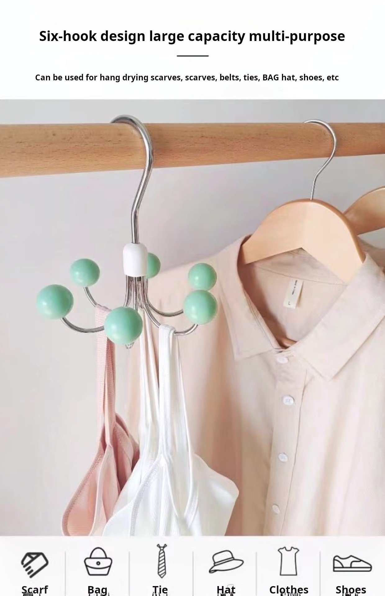 360ยฐ Rotatable Wardrobe Hooks Home Use Simple Multi-Function Storage Tool Dormitory Daily Use Six-Prong Hooks (PACK OF 3)
