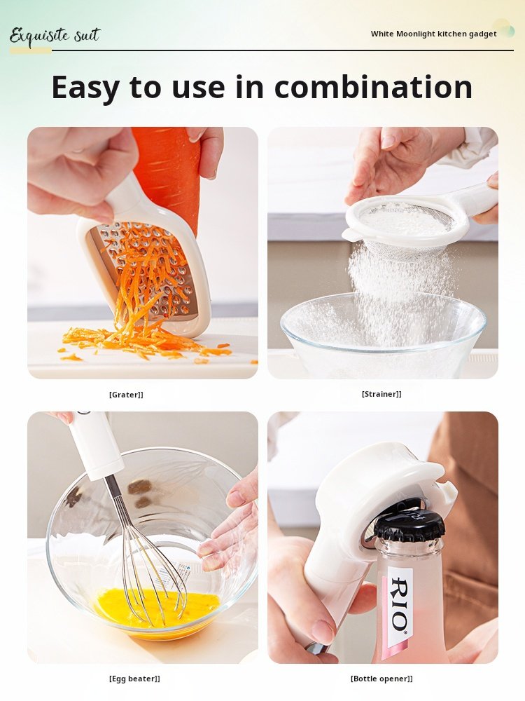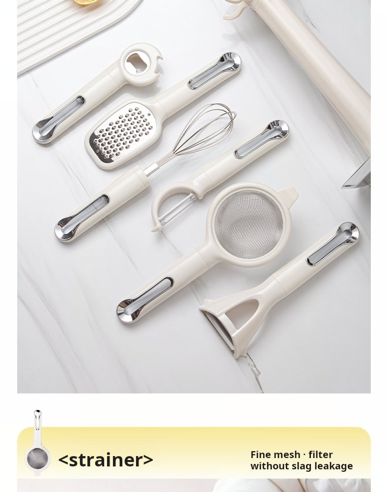 “Kitchen Tool Set – 7-Piece Multifunctional Set with Bottle Opener, Sieve, Grater, Egg Beater, and More”