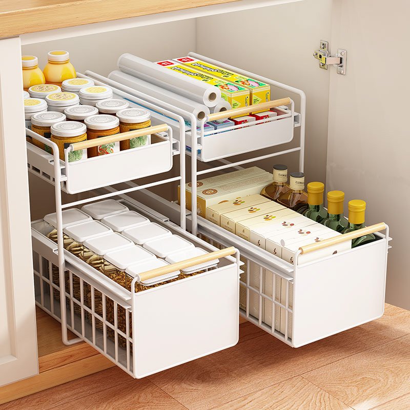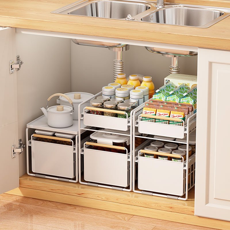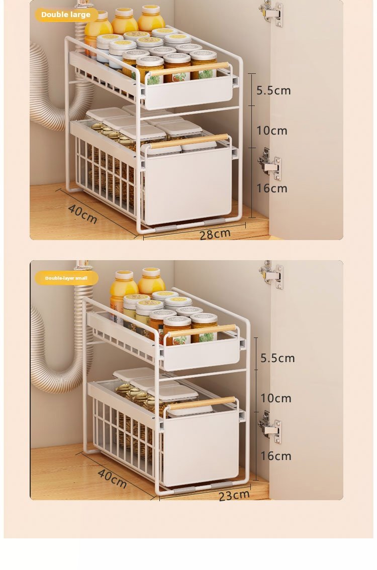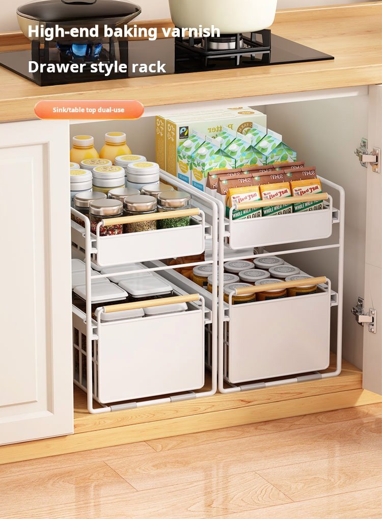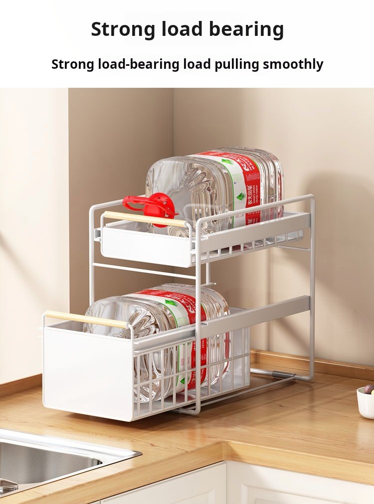 Under-Sink Kitchen Storage Rack โ Multifunctional Pull-Out Cabinet Organizer for Spices, Bowls & Dishes