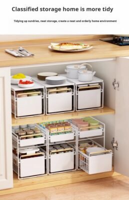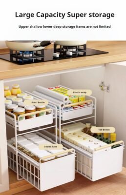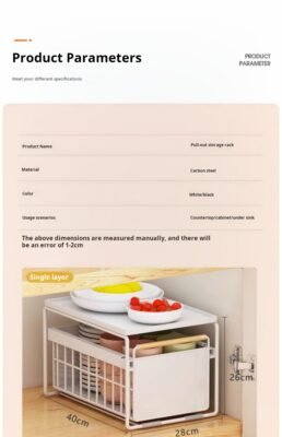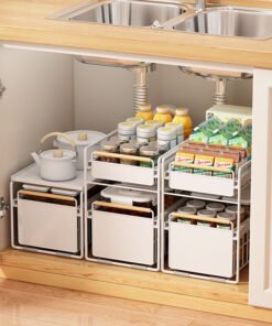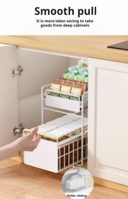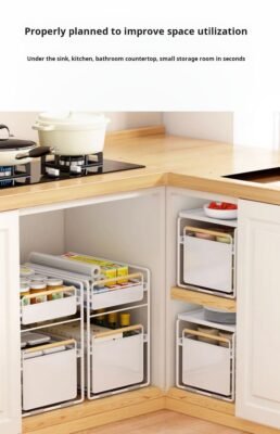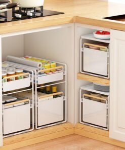 Be the first to review “Under-Sink Kitchen Storage Rack โ Multifunctional Pull-Out Cabinet Organizer for Spices, Bowls & Dishes” Cancel reply