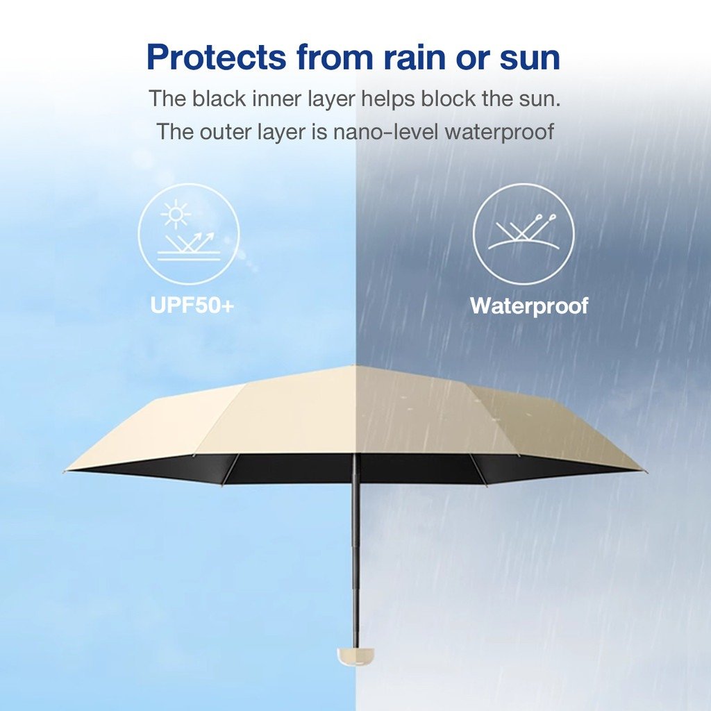 Sun Protection Umbrella – UV Protection Compact Portable Sun & Rain Dual-Use Beige Capsule Mini Folding Umbrella