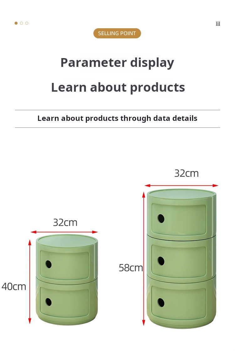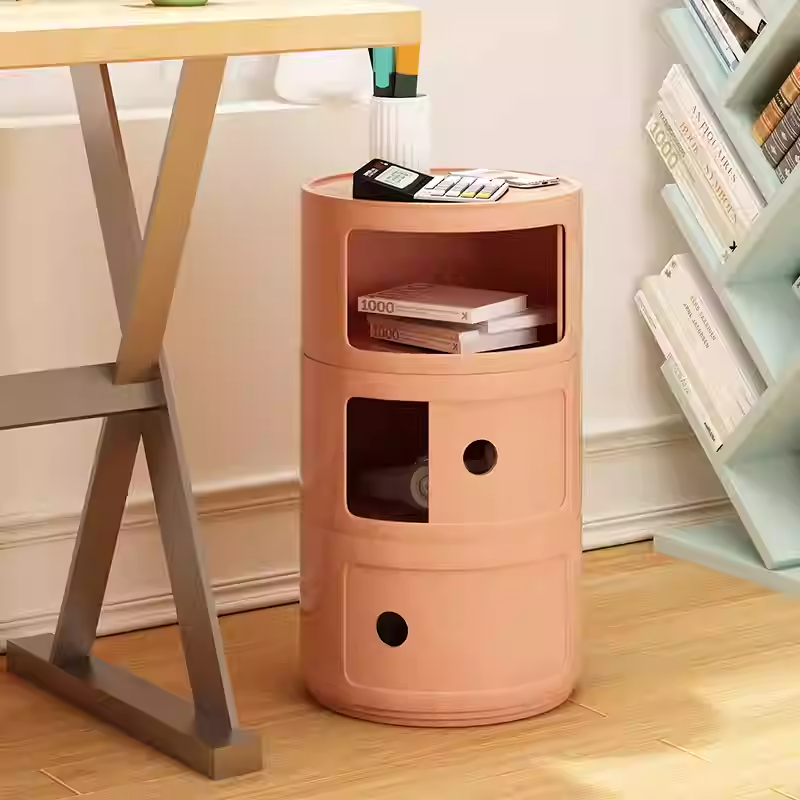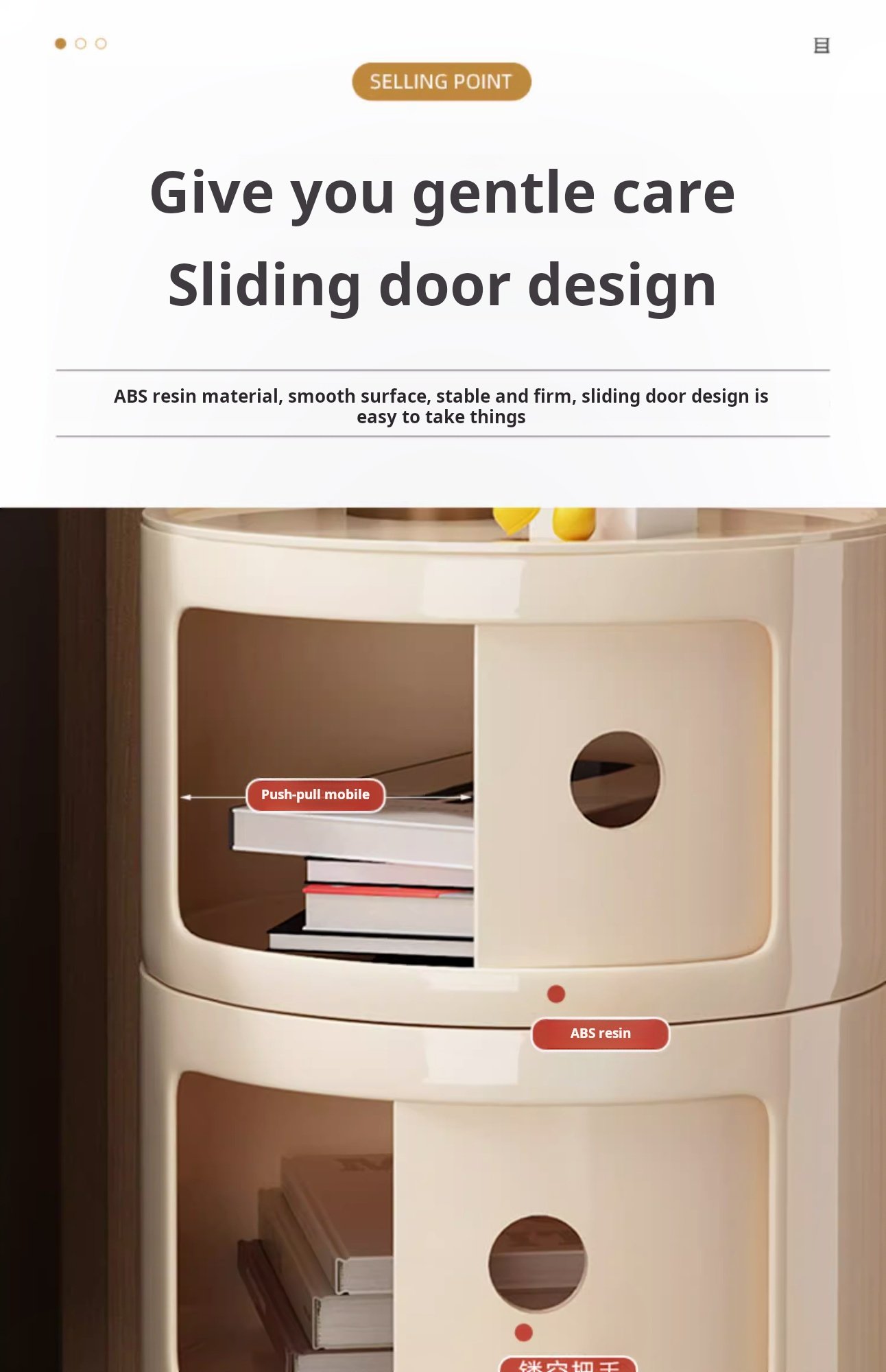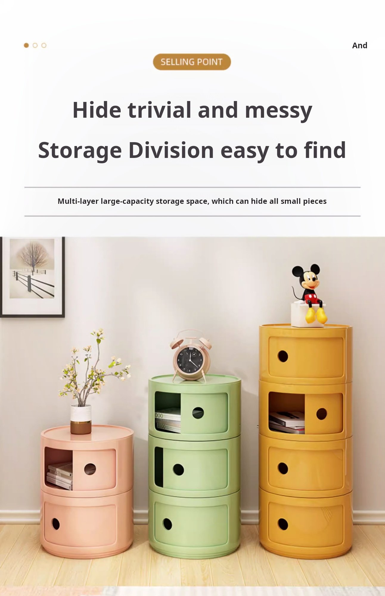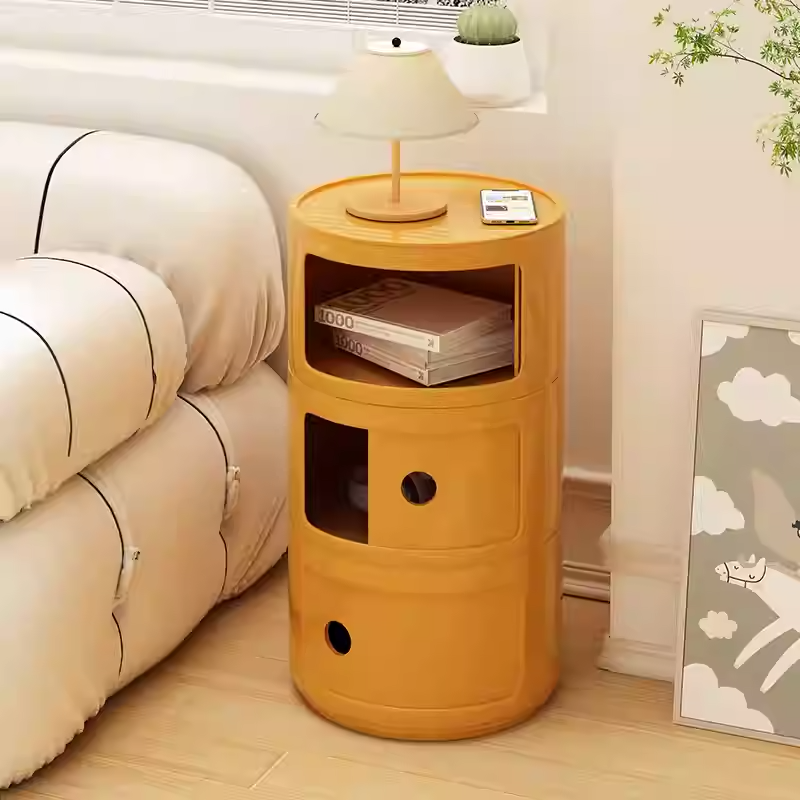 Cream-colored bedside cabinet with narrow edges, round storage shelf, creative macaron-style small bedroom storage cabinet