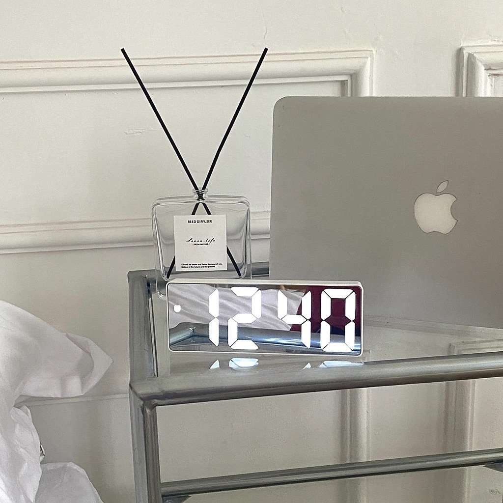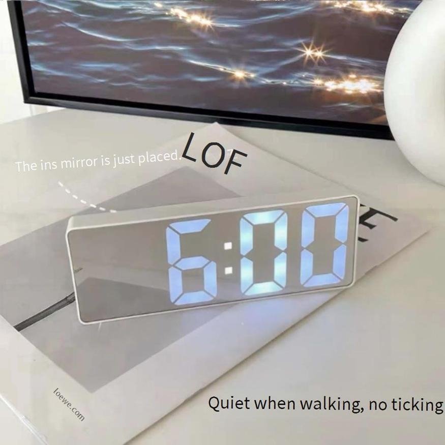 Small Alarm Clock Desktop Electronic Clock LED Night Light Mirror Finish Silent Time Display Decorative Digital Desk Clock