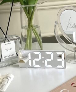 Be the first to review “Small Alarm Clock Desktop Electronic Clock LED Night Light Mirror Finish Silent Time Display Decorative Digital Desk Clock” Cancel reply