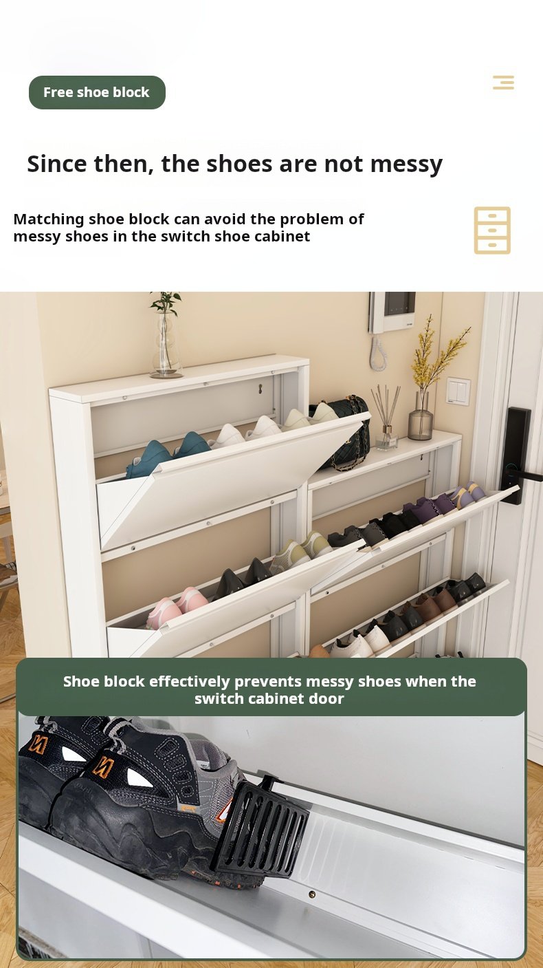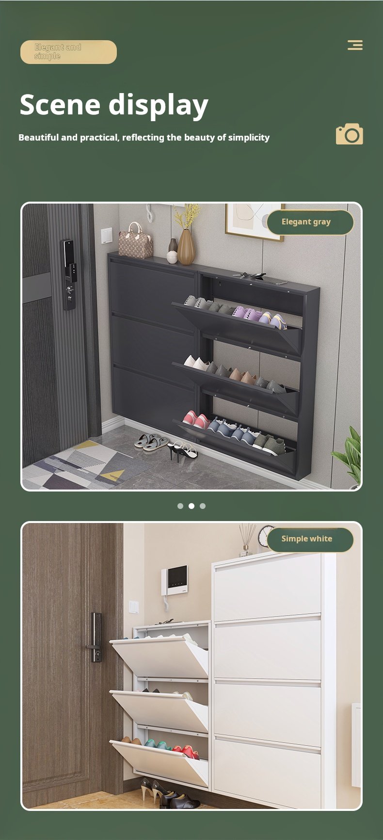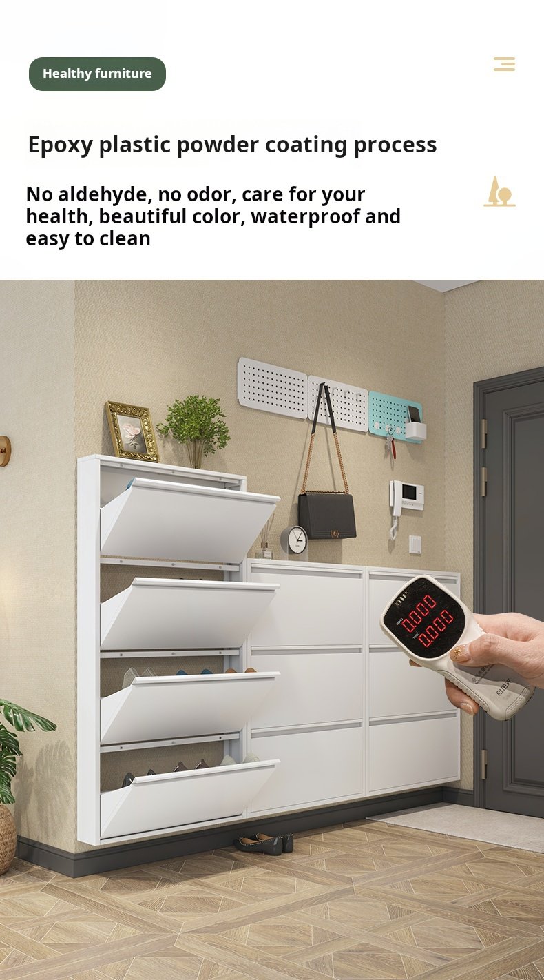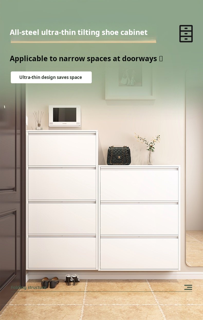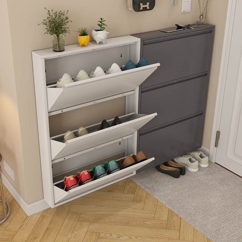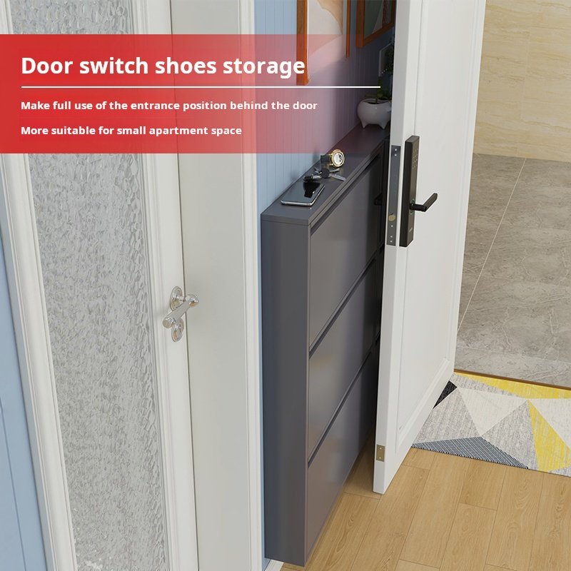 Ultra-Slim Entryway Cabinet Steel Flip-Top Shoe Cabinet Behind Staircase Entry Door Super-Thin Shoe Cabinet for Home Use Large Capacity at the Doorway