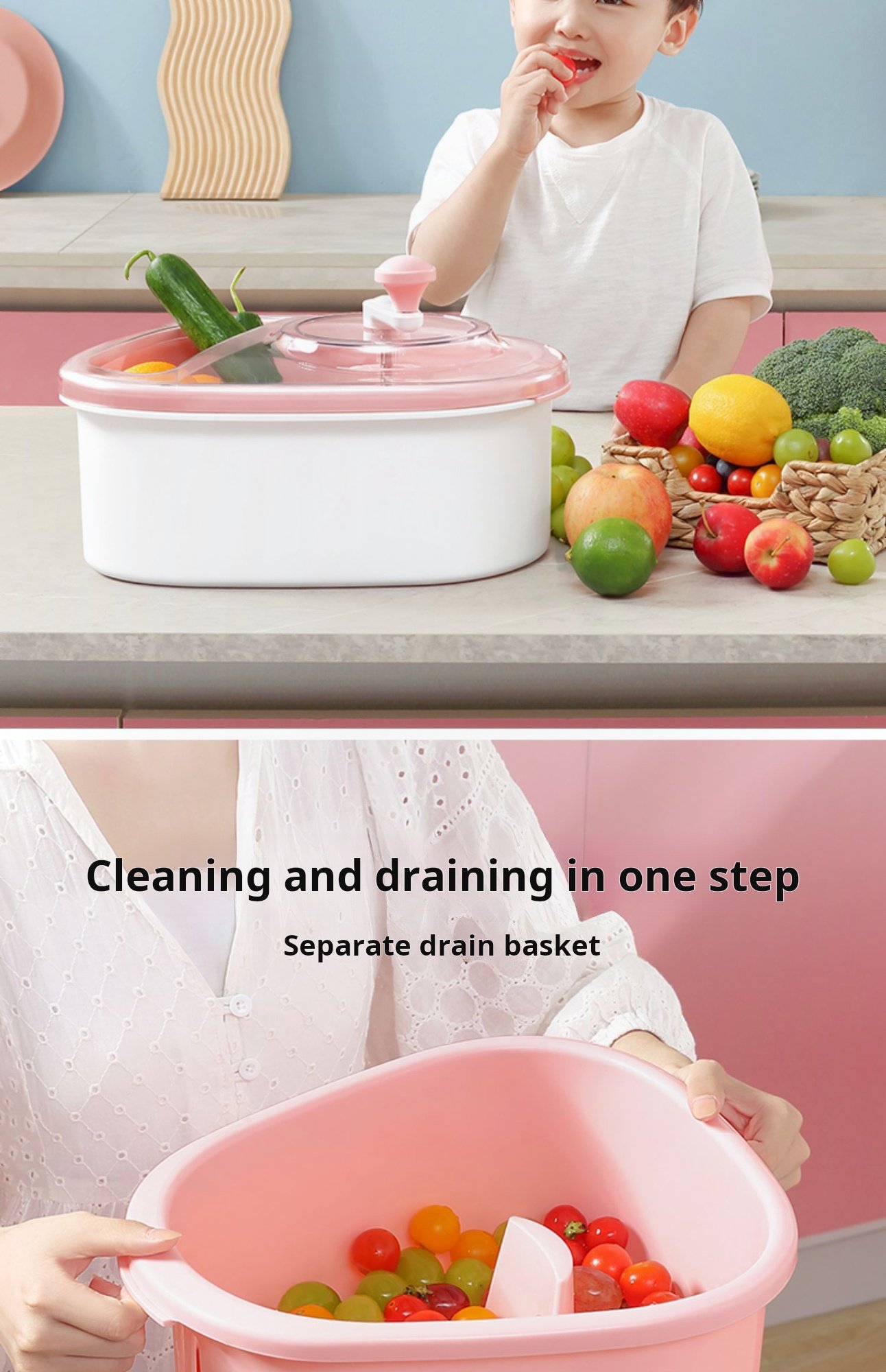 “Hands-Free Fruit & Vegetable Washing Bowl – Draining Basket, New Home Produce Cleaner”