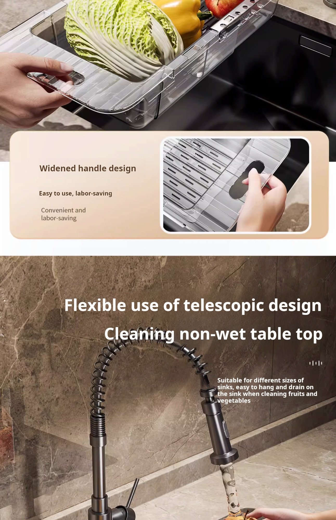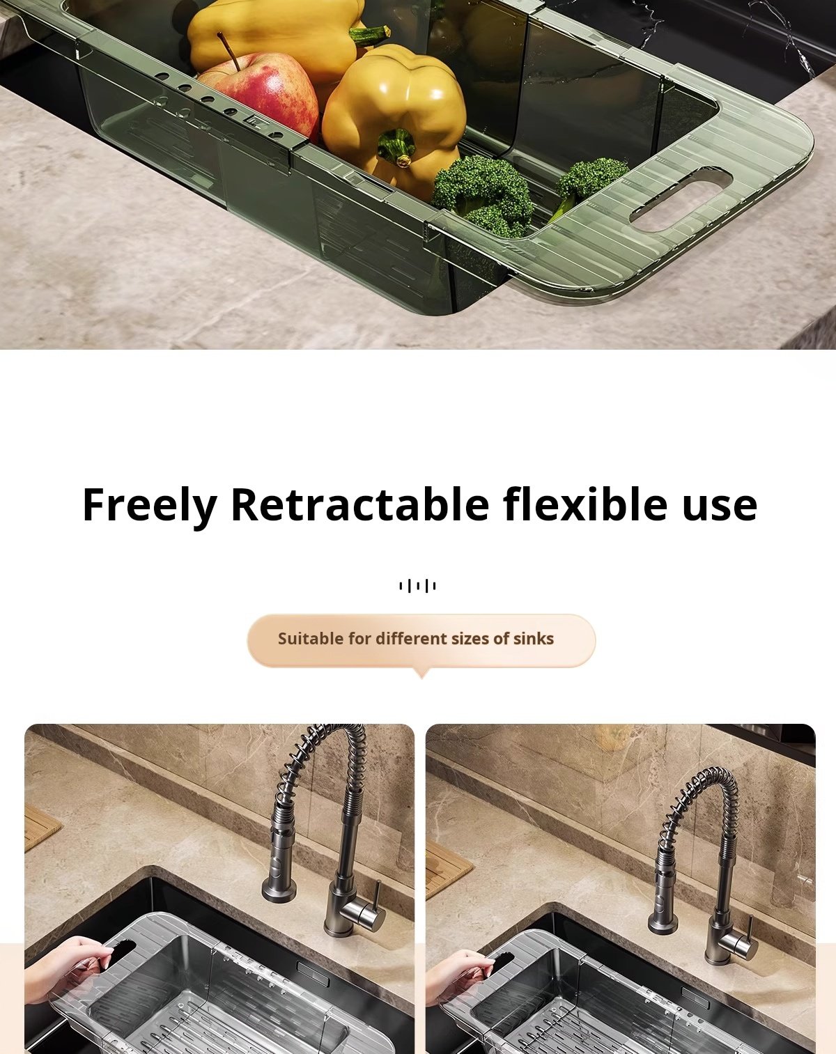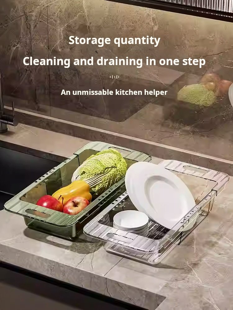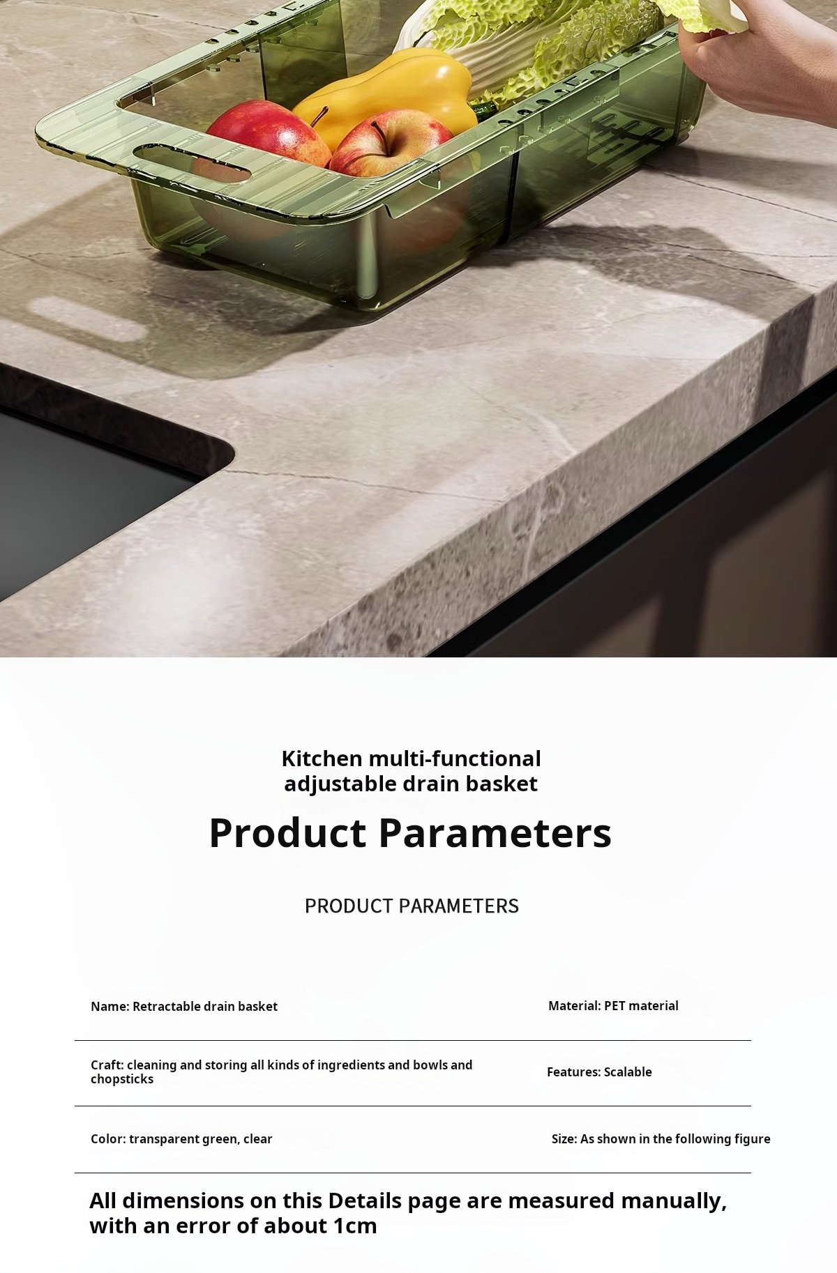 Kitchen Retractable Drain Rack, Vegetable Washing Basin Drain Basket, Household Plastic Vegetable Washing Basket, Sink Drain Basket, Kitchen Vegetable Basket (PACK OF 2)