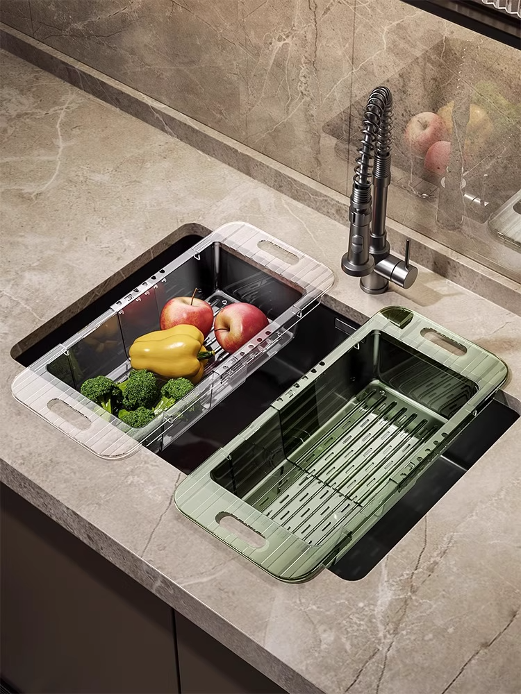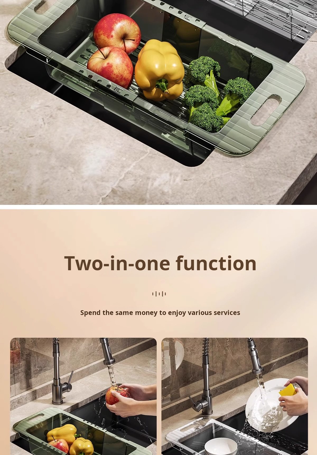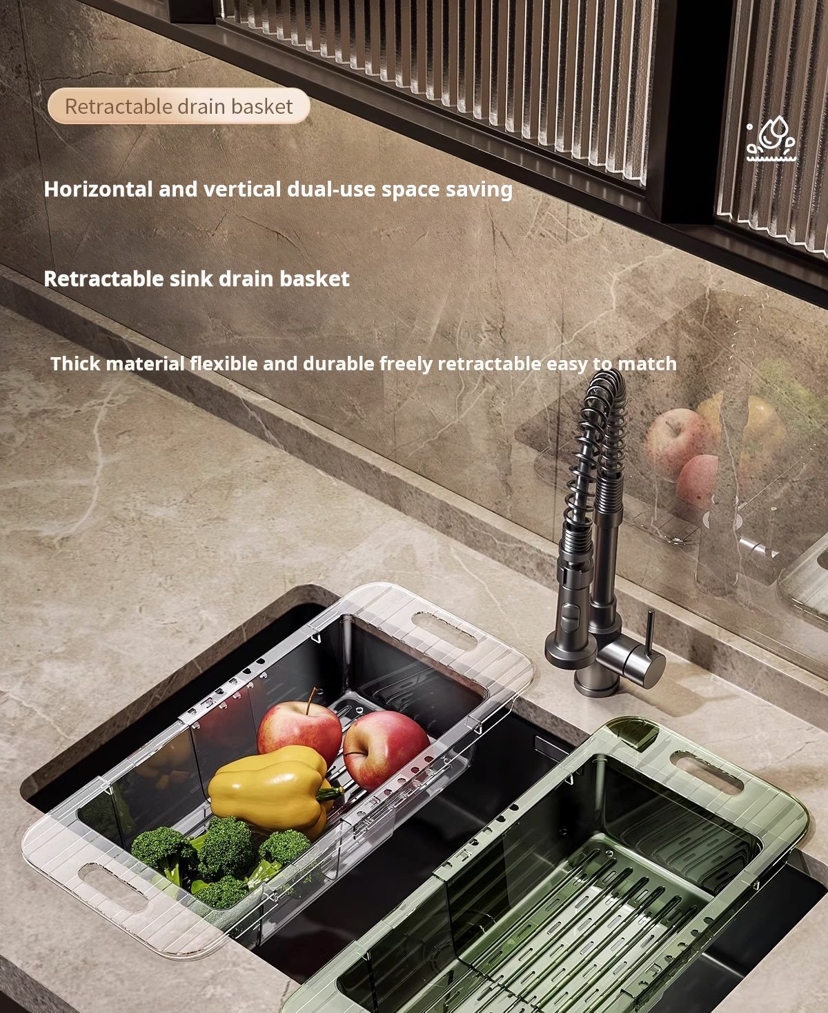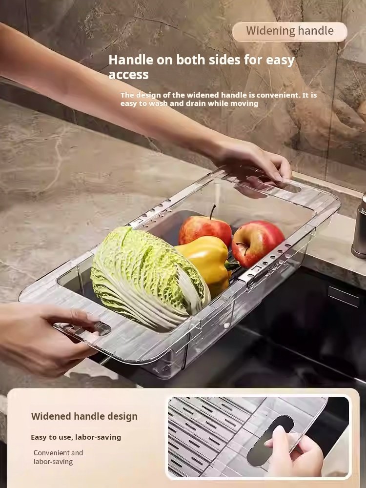Kitchen Retractable Drain Rack, Vegetable Washing Basin Drain Basket, Household Plastic Vegetable Washing Basket, Sink Drain Basket, Kitchen Vegetable Basket (PACK OF 2)