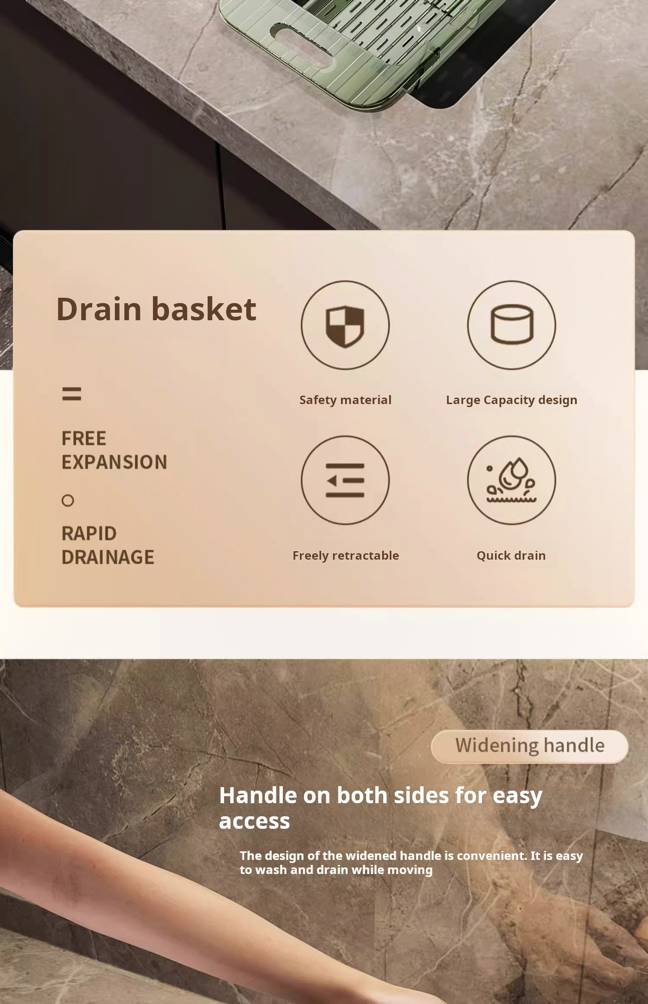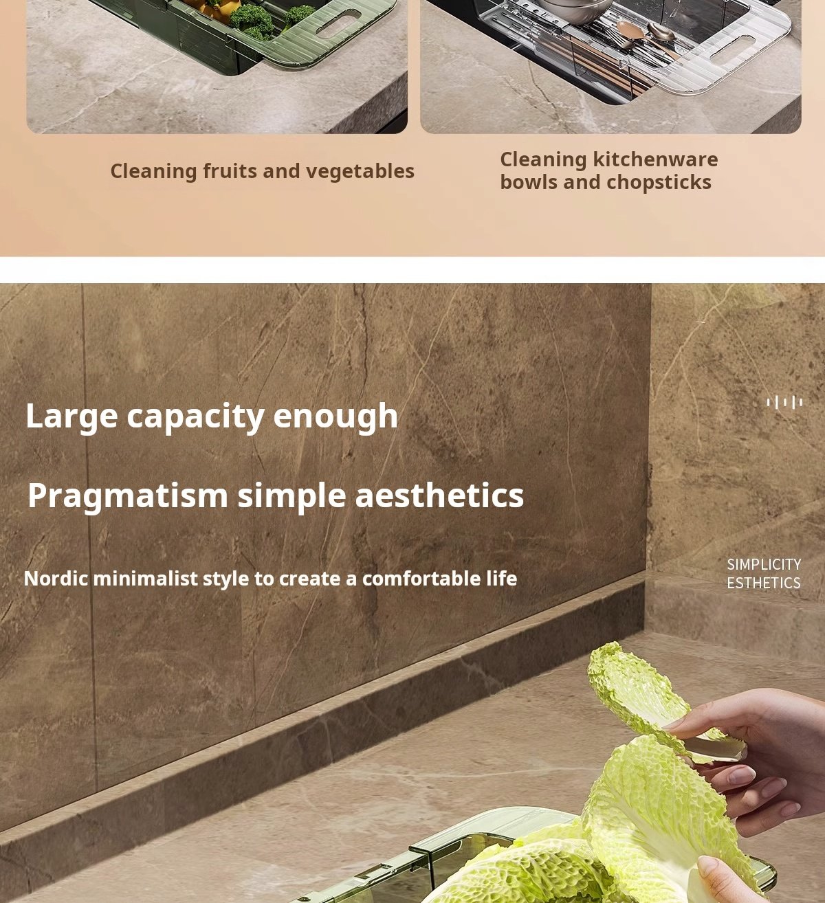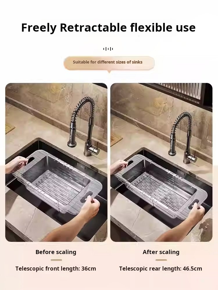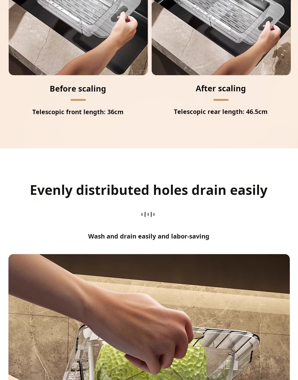 Kitchen Retractable Drain Rack, Vegetable Washing Basin Drain Basket, Household Plastic Vegetable Washing Basket, Sink Drain Basket, Kitchen Vegetable Basket (PACK OF 2)