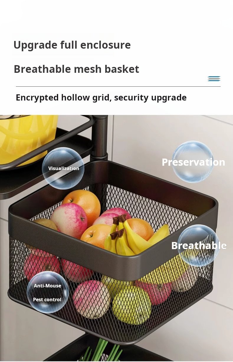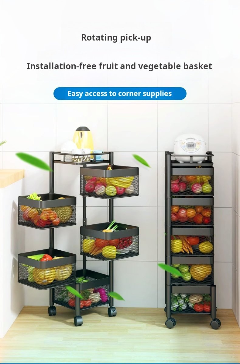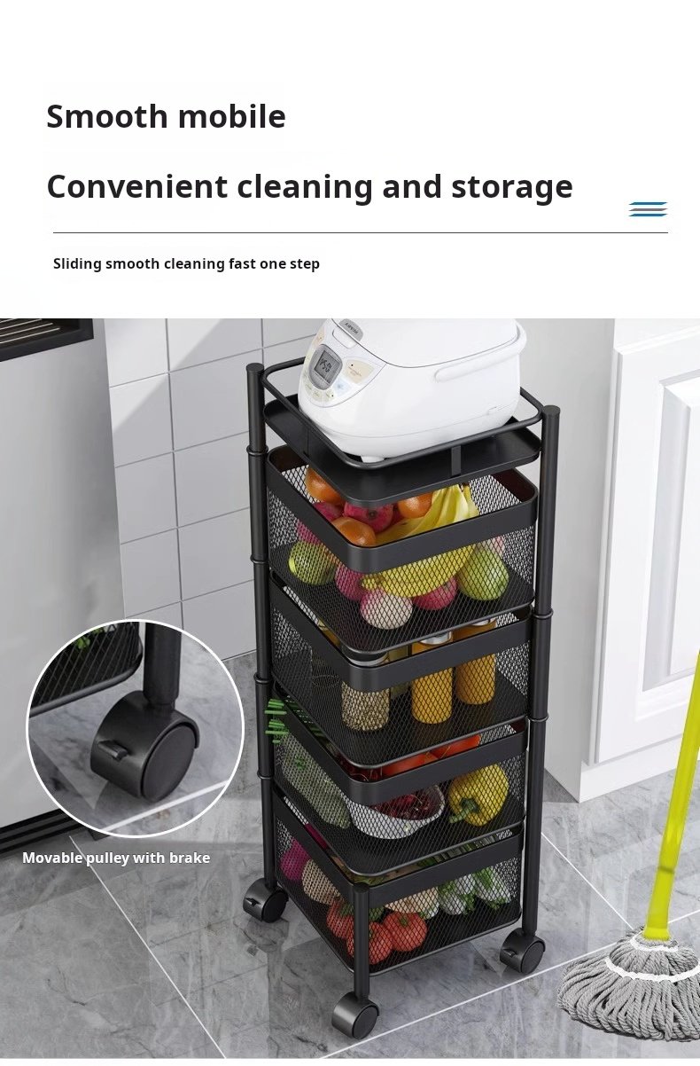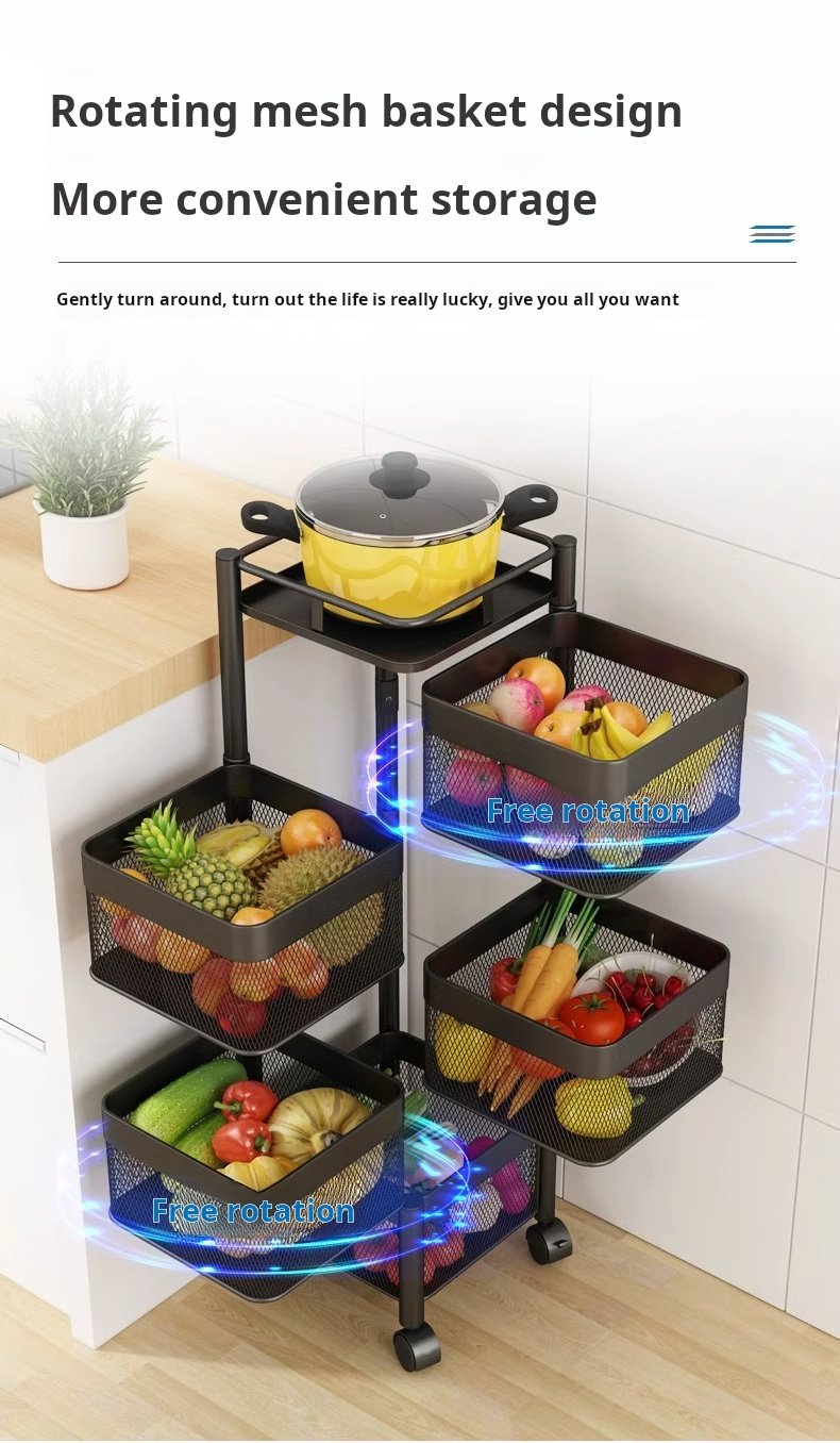 Kitchen rotating storage rack, home floor-standing multi-layer snack box, living room fruit and vegetable basket, small trolley storage rack, mobile