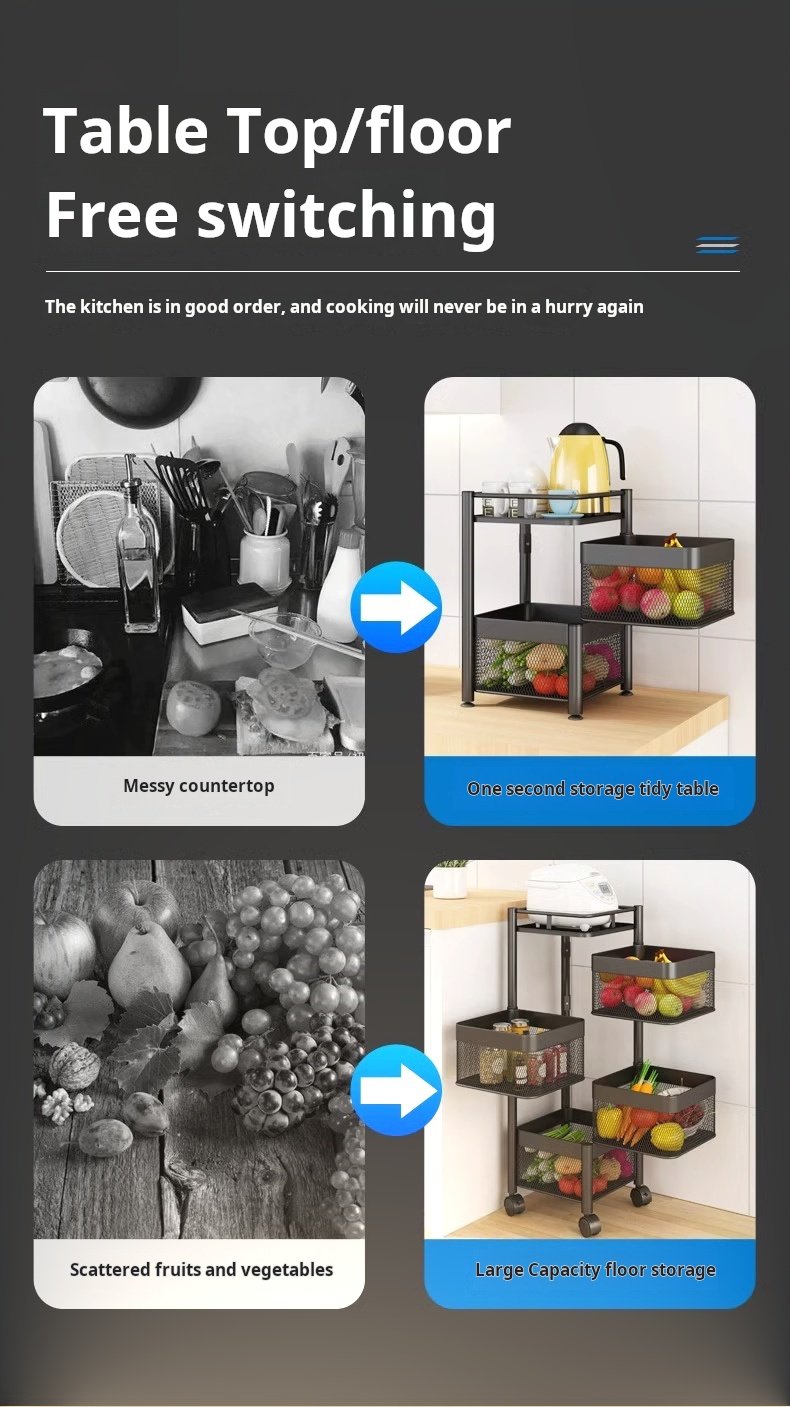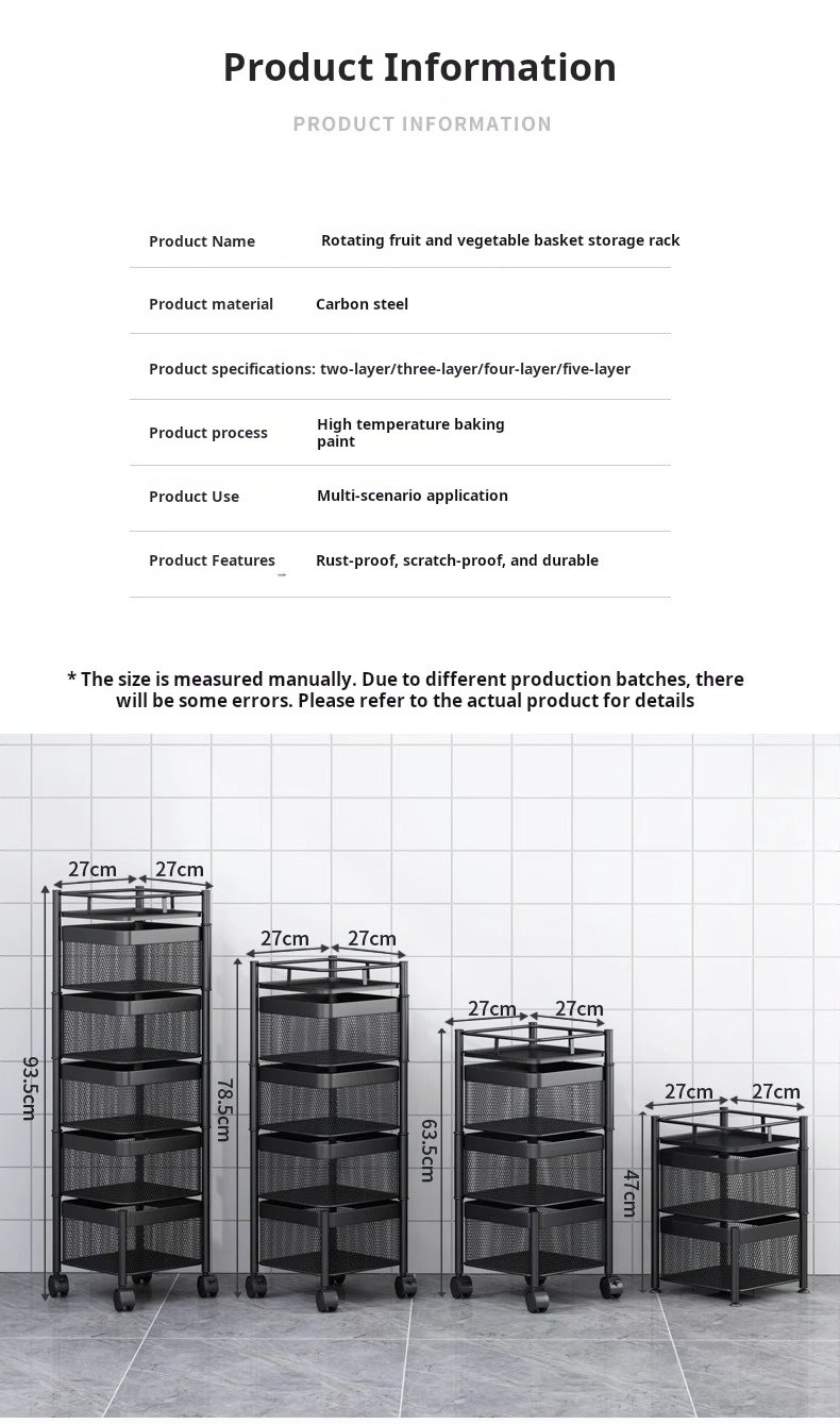 Be the first to review “Kitchen rotating storage rack, home floor-standing multi-layer snack box, living room fruit and vegetable basket, small trolley storage rack, mobile” Cancel reply