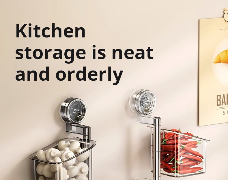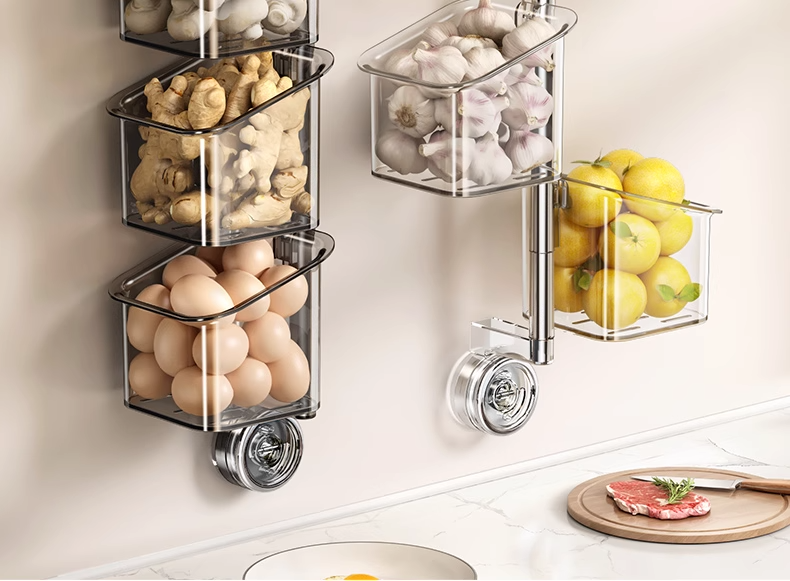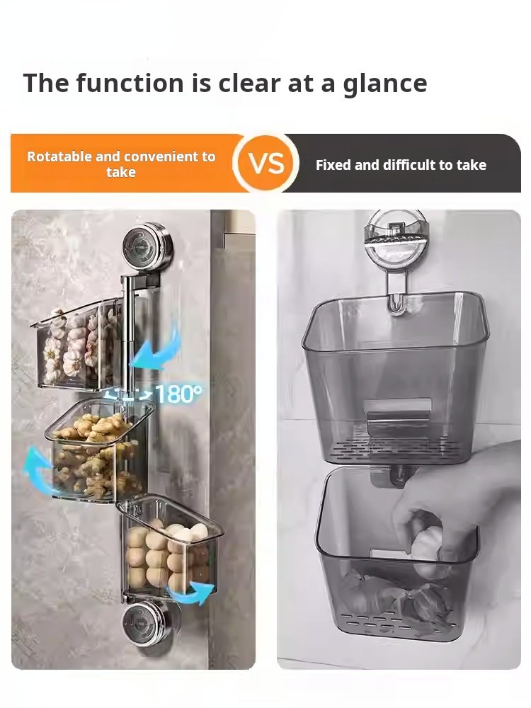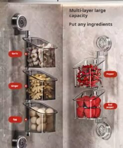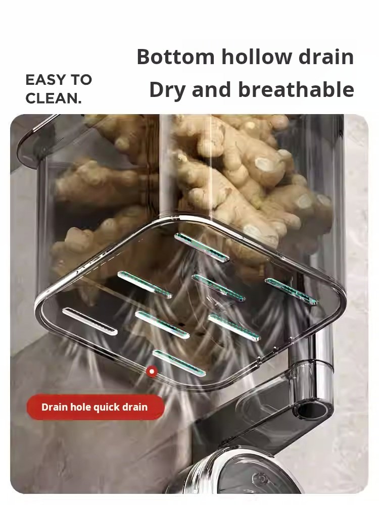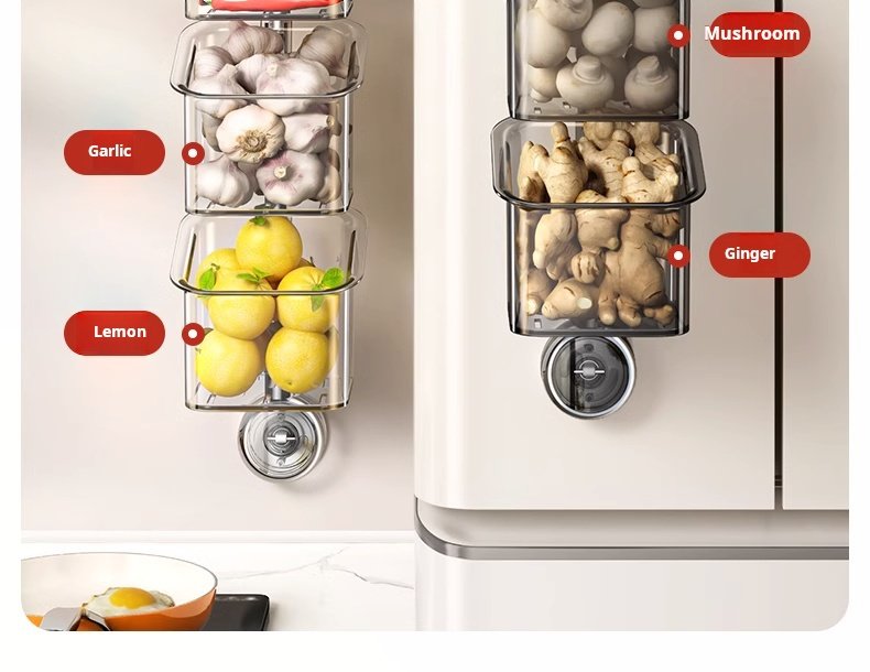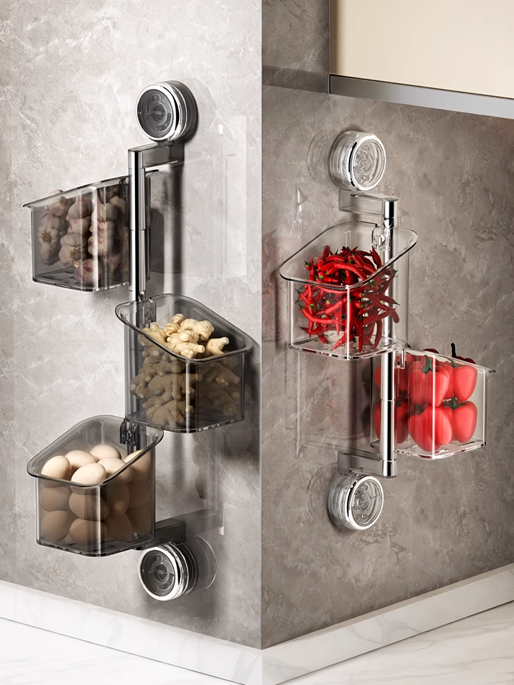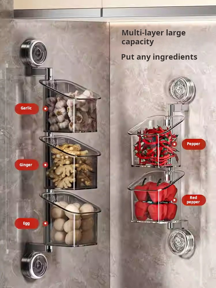 Onion, Ginger, Garlic, and Chili Pepper Storage Boxes, Multi-Functional Kitchen Shelf, Suction Cup Vegetable Basket, Seasoning Wall Hanging Tool (PACK OF 4)