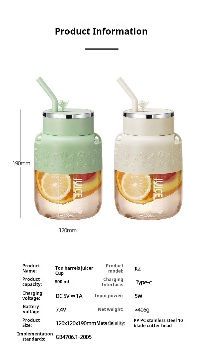 New Large-Capacity Wireless Portable Outdoor Juicer Multi-Function Fresh Juice Extractor with Ice Crushing Capability
