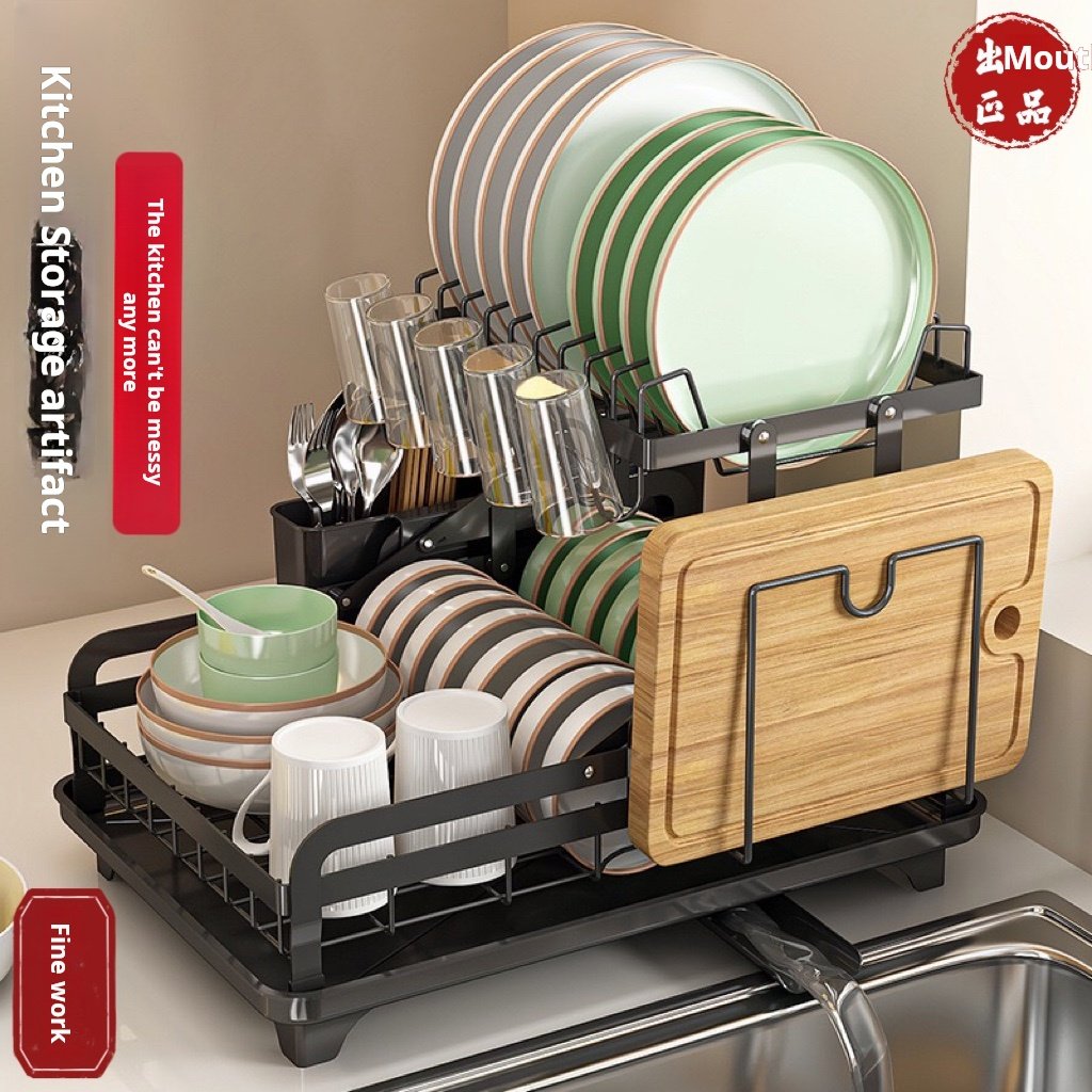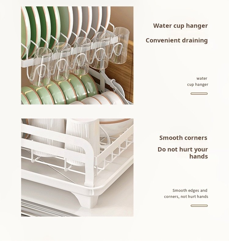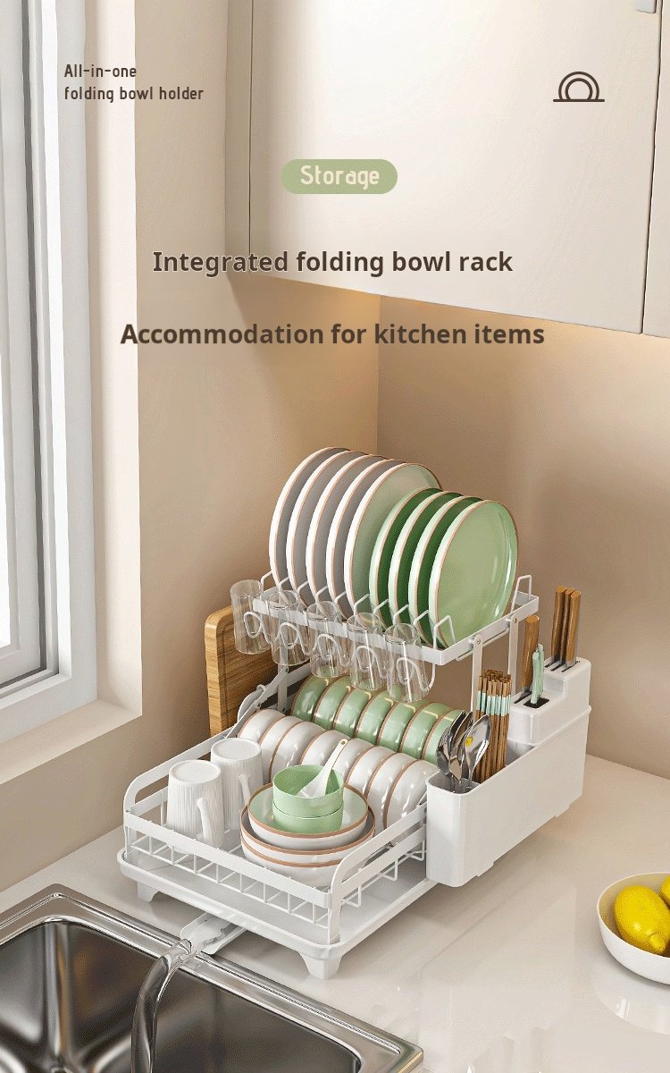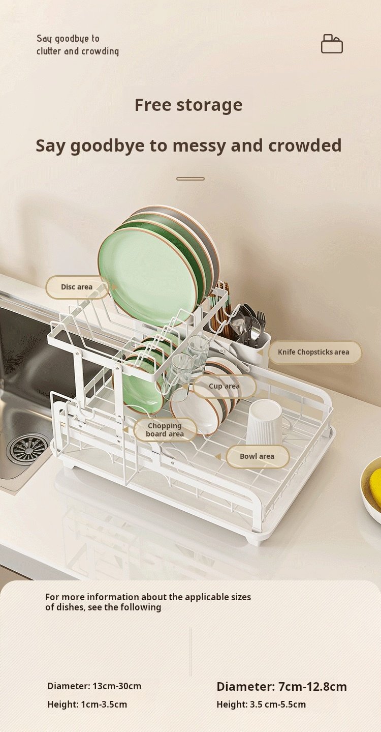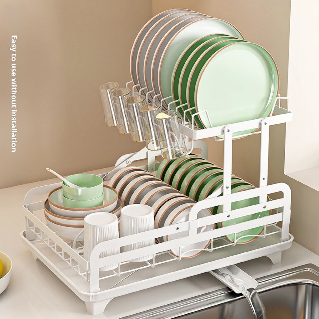 No-Installation Kitchen Dish Rack โ Double-Layer Draining Rack for Plates, Bowls & Cutlery, Multifunctional Home Storage