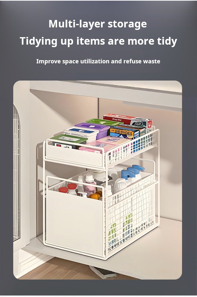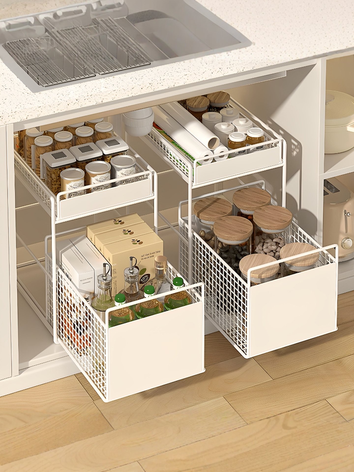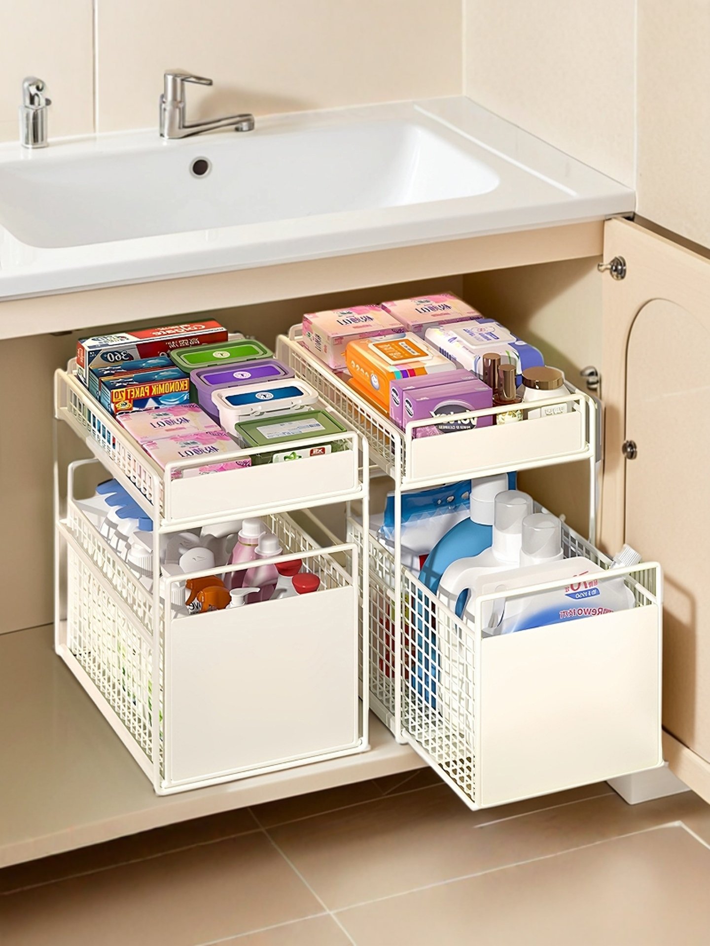 Bathroom Cabinet Sink Storage Rack Drafting Double-Layer Cabinet Internal Dedicated Pull-Out Basket Bathroom Storage Cabinet Tiered Shelving Unit
