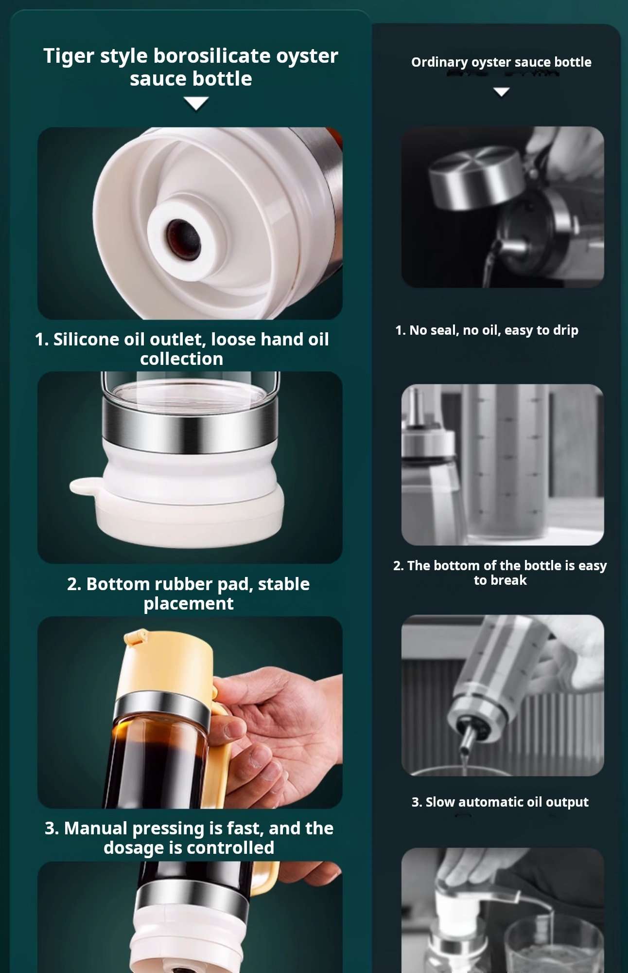 Squeeze-type oil bottle, food-grade seasoning squeeze bottle, high borosilicate glass squeeze bottle, honey and tomato sauce bottle