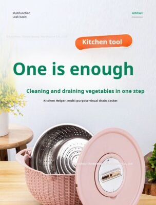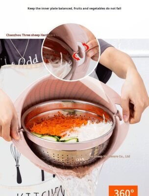 Be the first to review “Drain Basket Stainless Steel Thickened Inner Liner Set Home Use Rotatable Double-Layer Shredding Fruit and Vegetable Washing Basket” Cancel reply