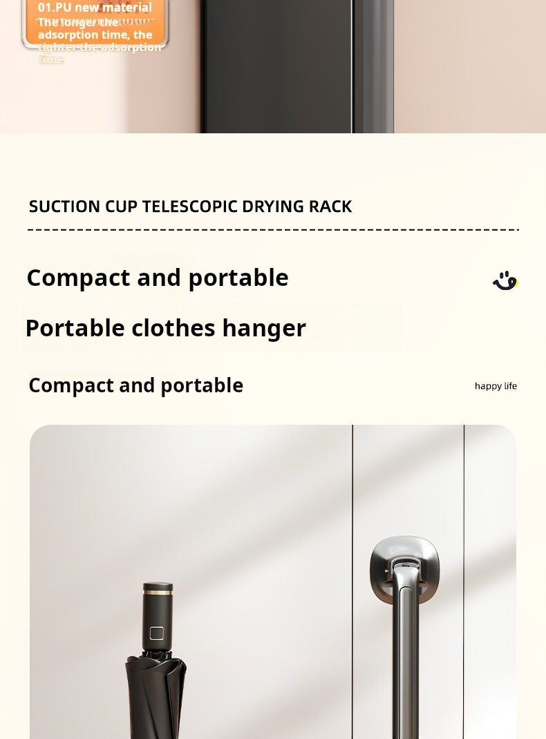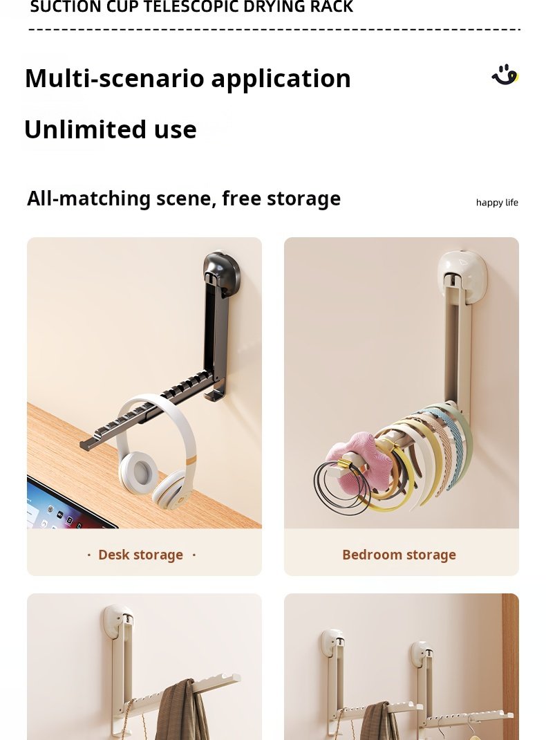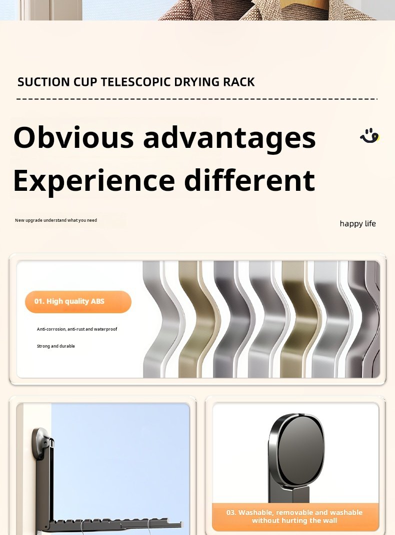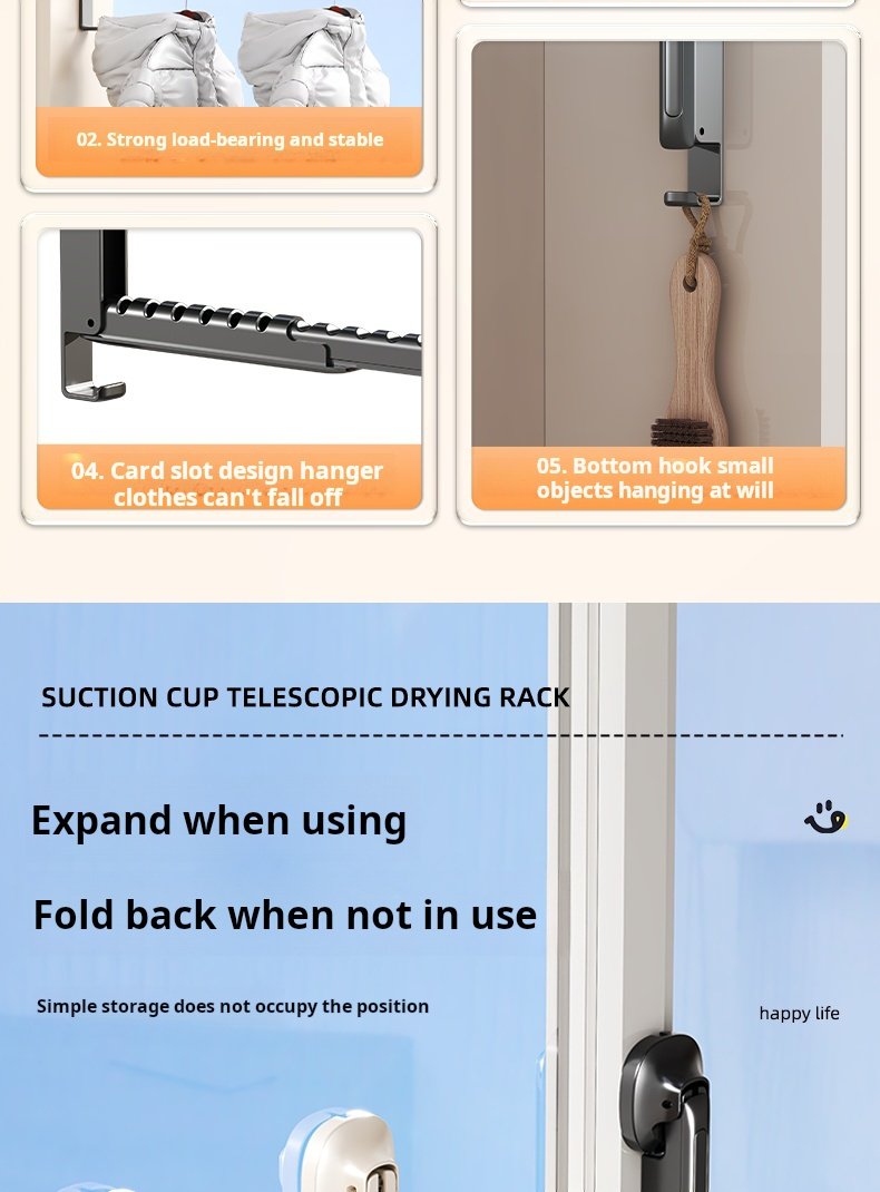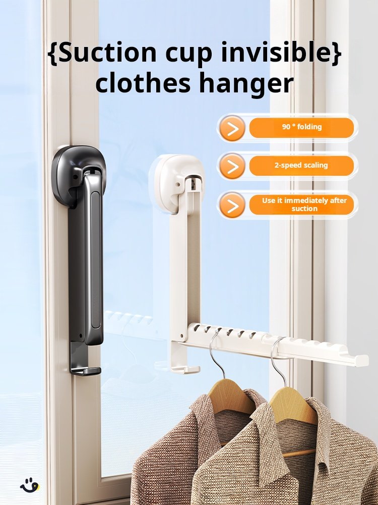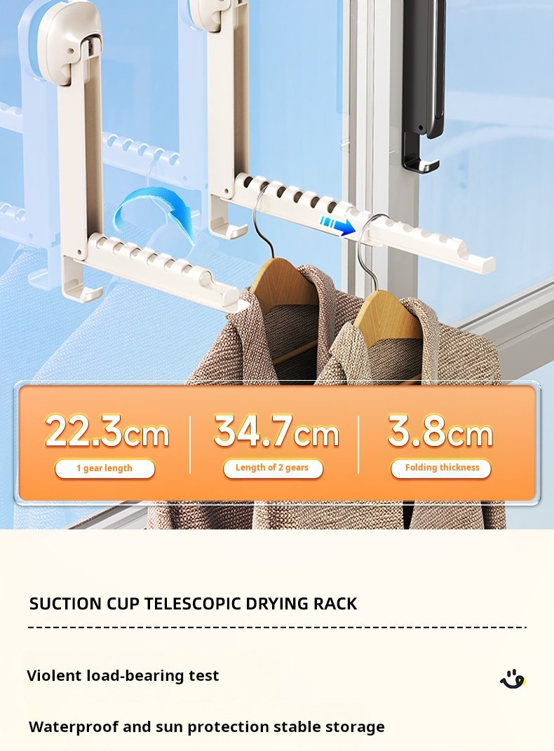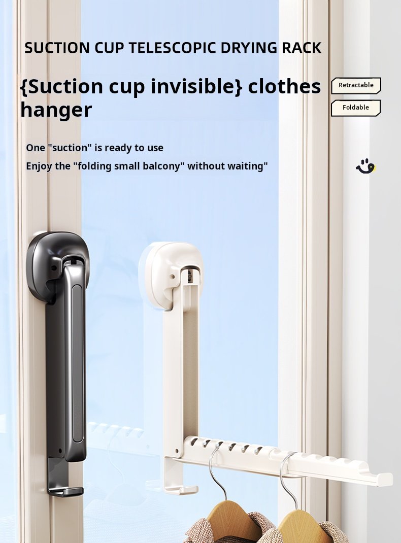 “Suction Cup Telescopic Clothes Rack – Foldable, Multifunctional Indoor Balcony Hanger for Home & Travel”