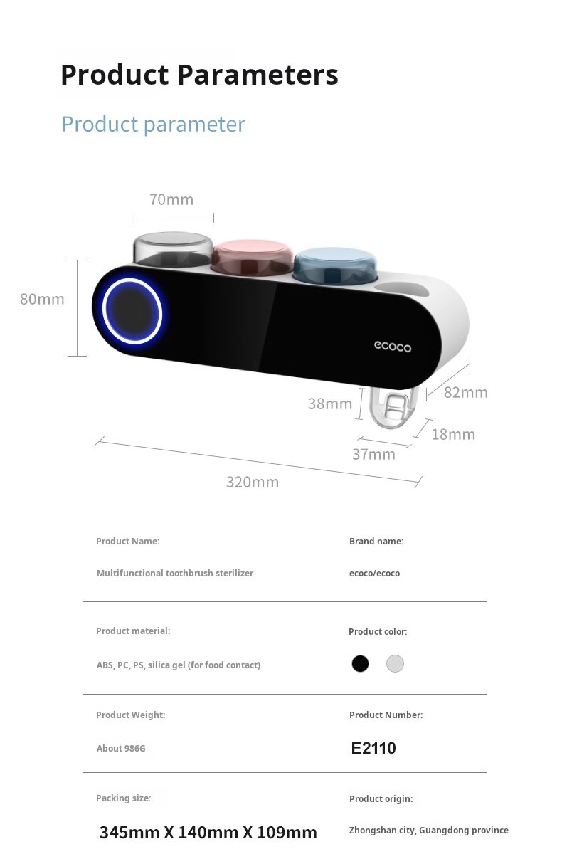 Be the first to review “Toothbrush sterilizer, smart antibacterial toothbrush cup, wall-mounted electric toothbrush cup rack, storage rack” Cancel reply